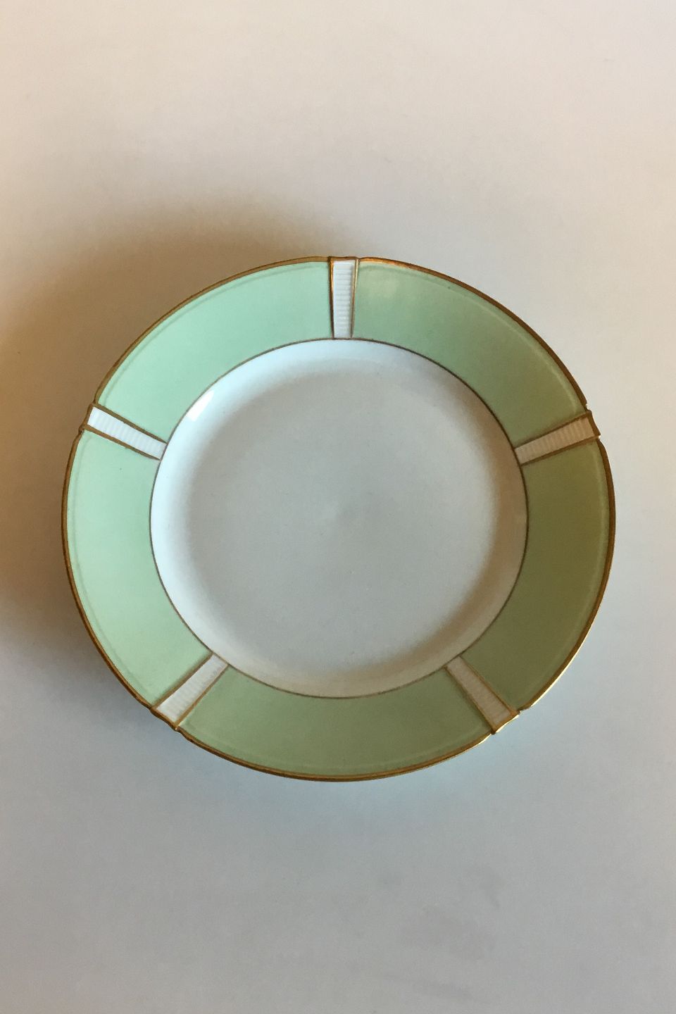 Bing & Grøndahl Stel med grøn dekoration med guld på form 507(Herregaard) Spisetallerken No 25. Måler 24 cm
