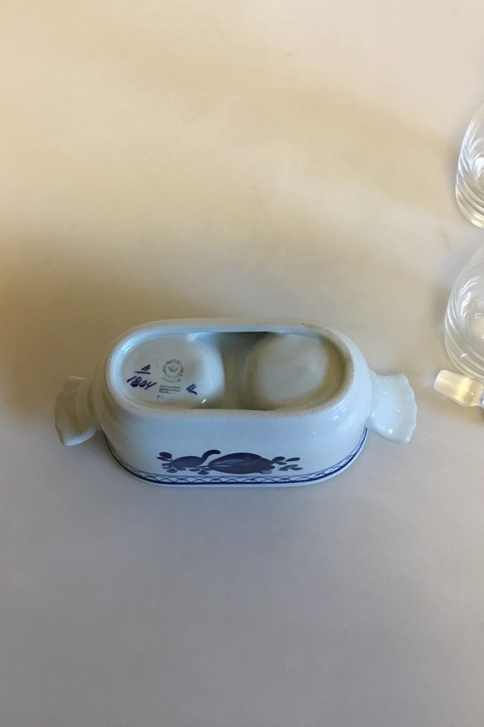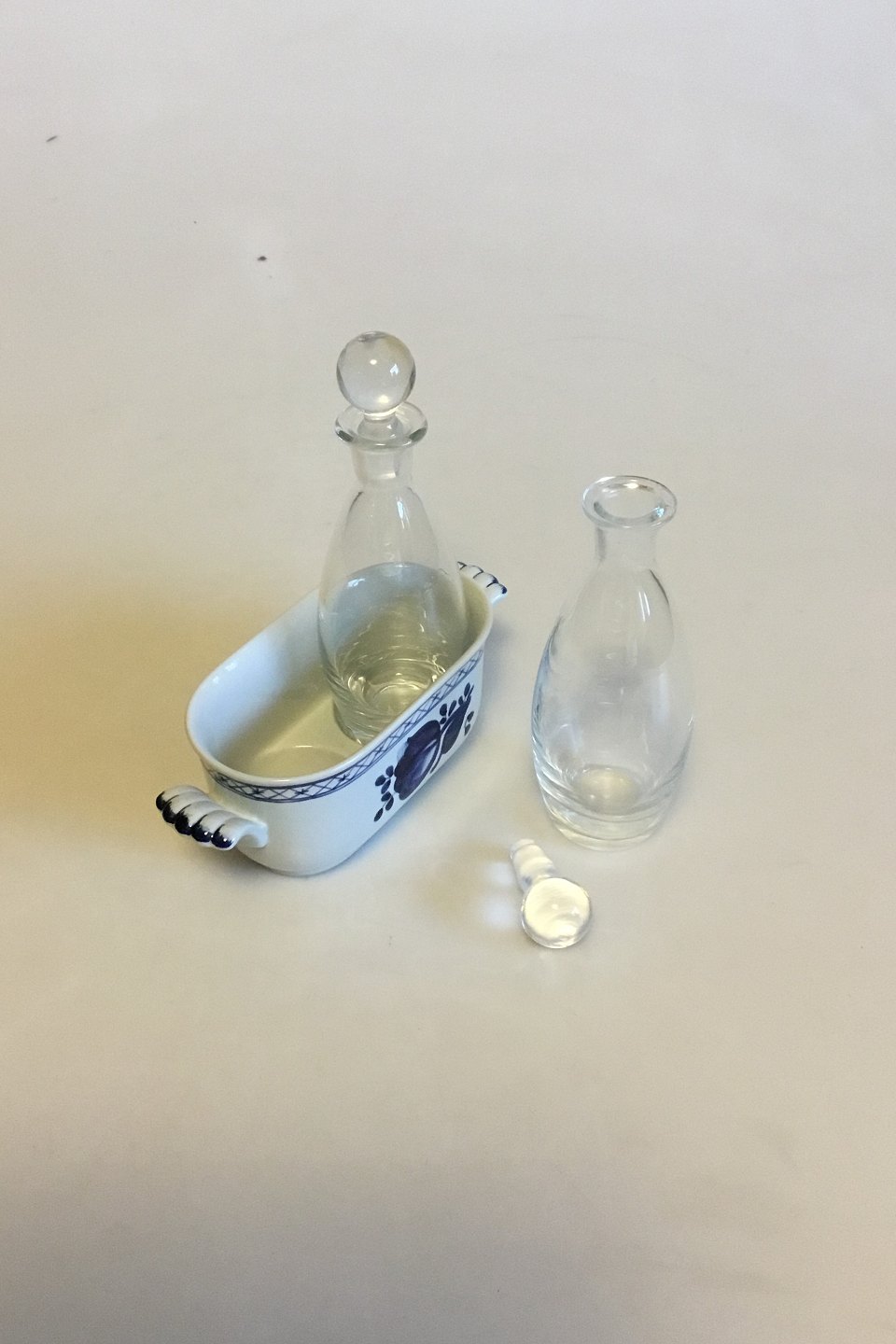 Royal Copenhagen Blue Tranquebar Oil-Vinegar Set No 1804. Measures 14 cm / 5 33/64 in. x 15.5 cm / 6 7/64 in.