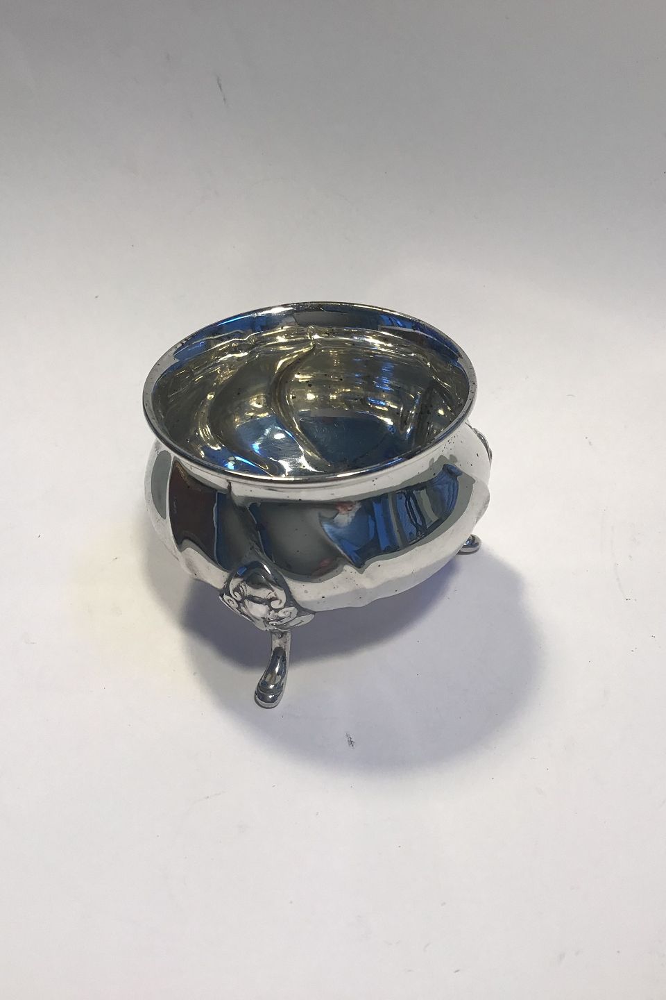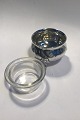 Skævknækket Saltkar Sølv med glas indsats Diam 5.9 cm H 4.1 cm Nogen korrosion, indsats med lille hak