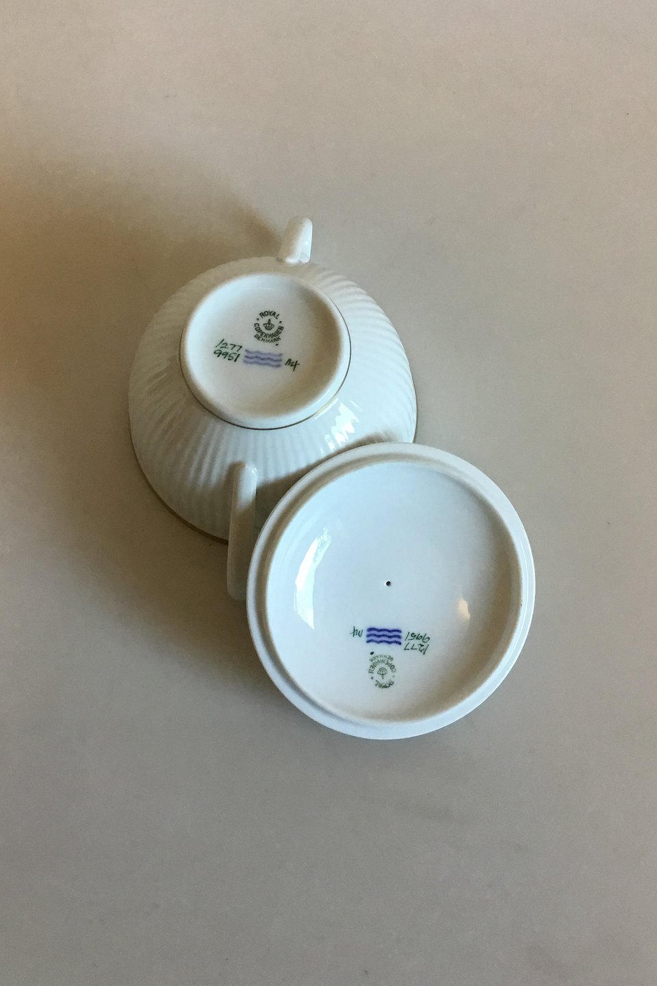 Royal Copenhagen Tunna Sugar Bowl with Lid No 1277/9951. Measures 8.5 cm / 3 11/32 in. x 12 cm / 4 23/32 in.
