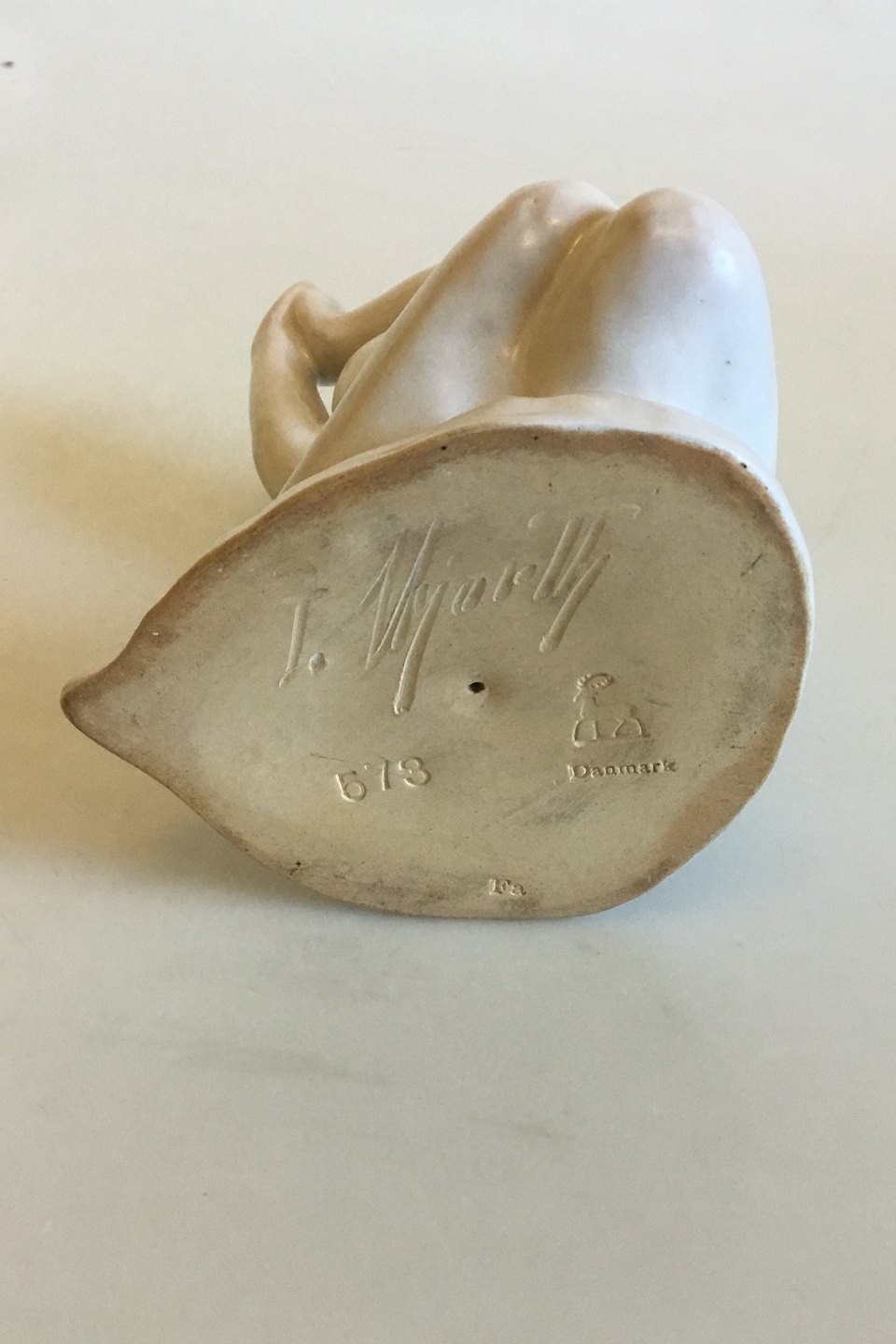 L. Hjorth White glazed ceramic Figurine of sitting woman No 573
