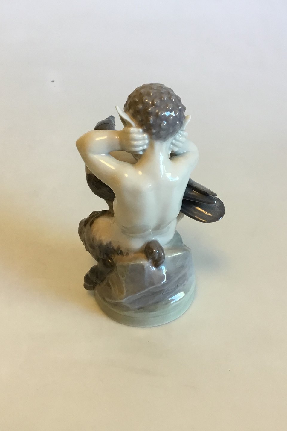 Royal Copenhagen Figur af Faun med med en krage No 2113. Måler 16 cm