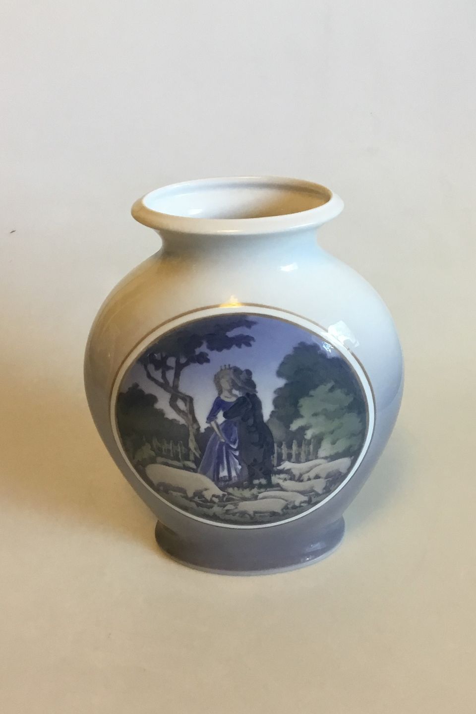 Royal Copenhagen Art Nouveau vase med Svinedrengen No 4481. Måler 22,5 cm