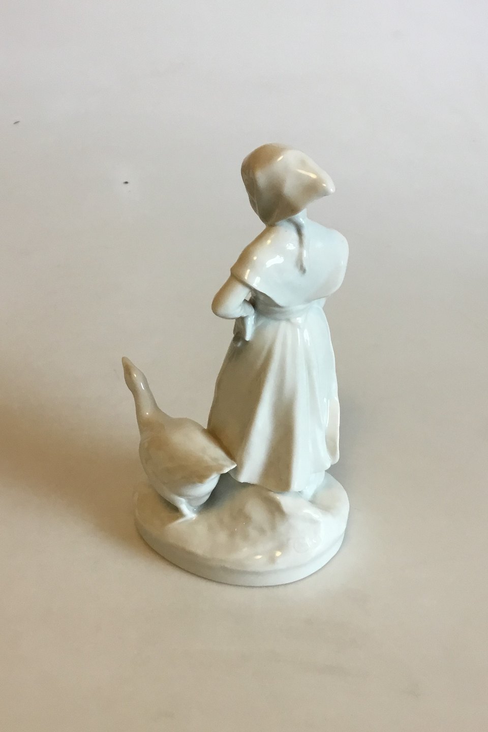 Royal Copenhagen Blanc de Chine Figur af Pige med gås No 528. Måler 18 cm