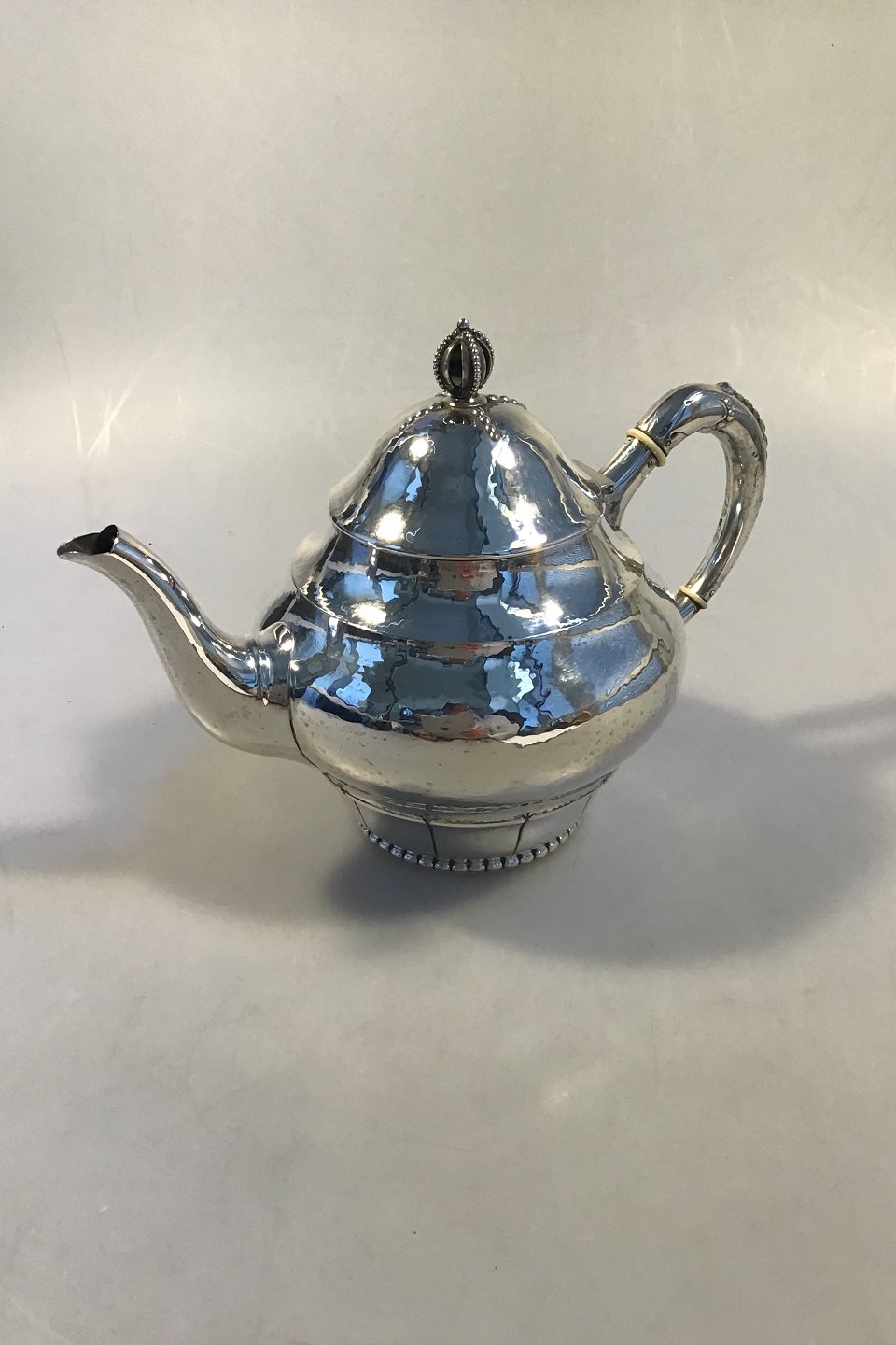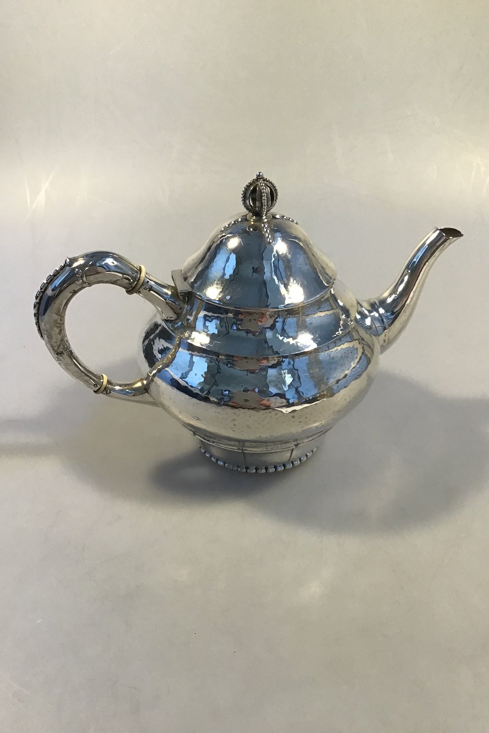 Dansk Sølv Thekande (1925) Perlebort og lågknop udformet som krone H 17.5 cm Vægt 427 gr