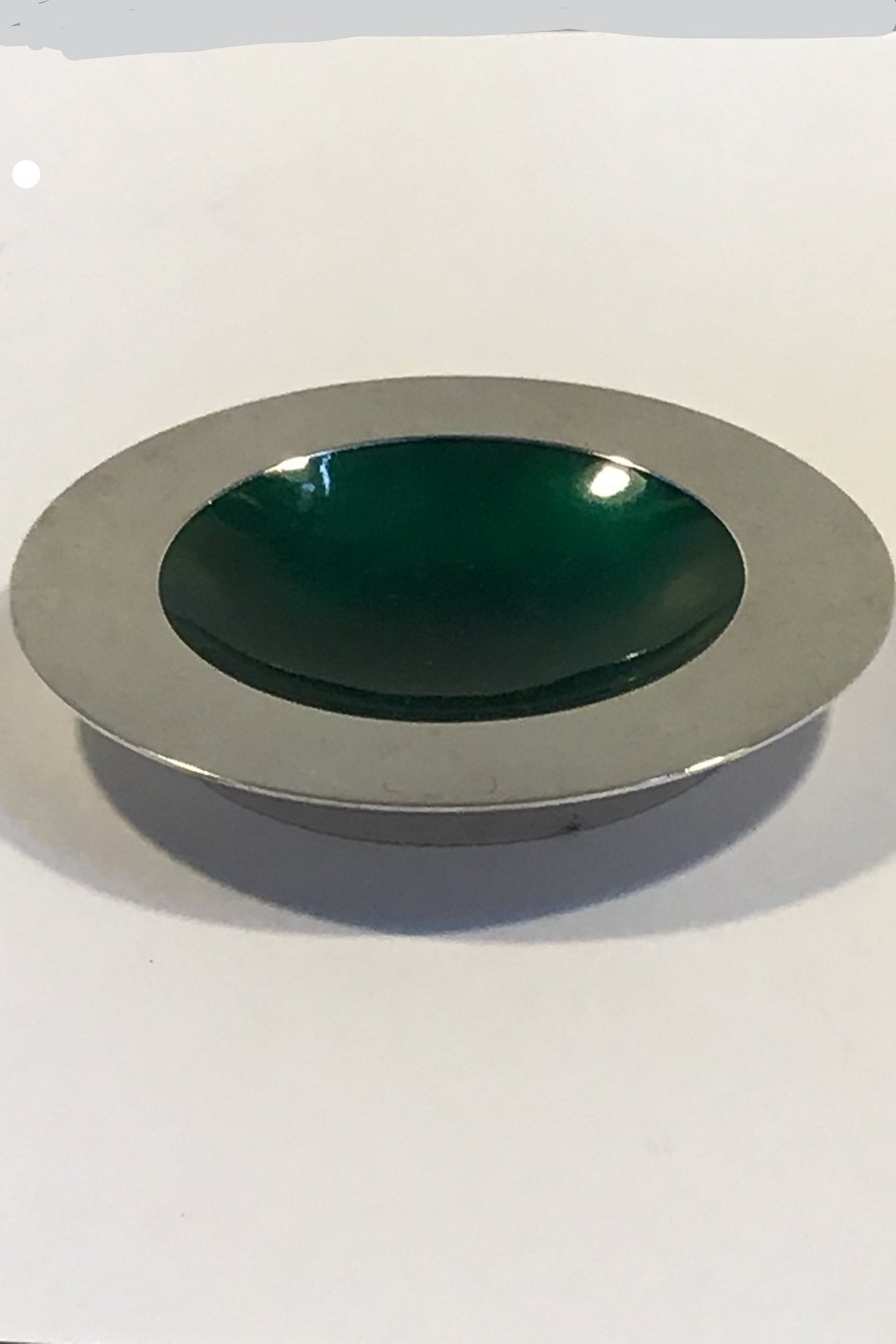Georg Jensen Sterling Sølv Bakke (Grøn emalje) No 1080 Søren Georg Jensen H 1.5 cm Diam 10 cm Vægt 115 gr