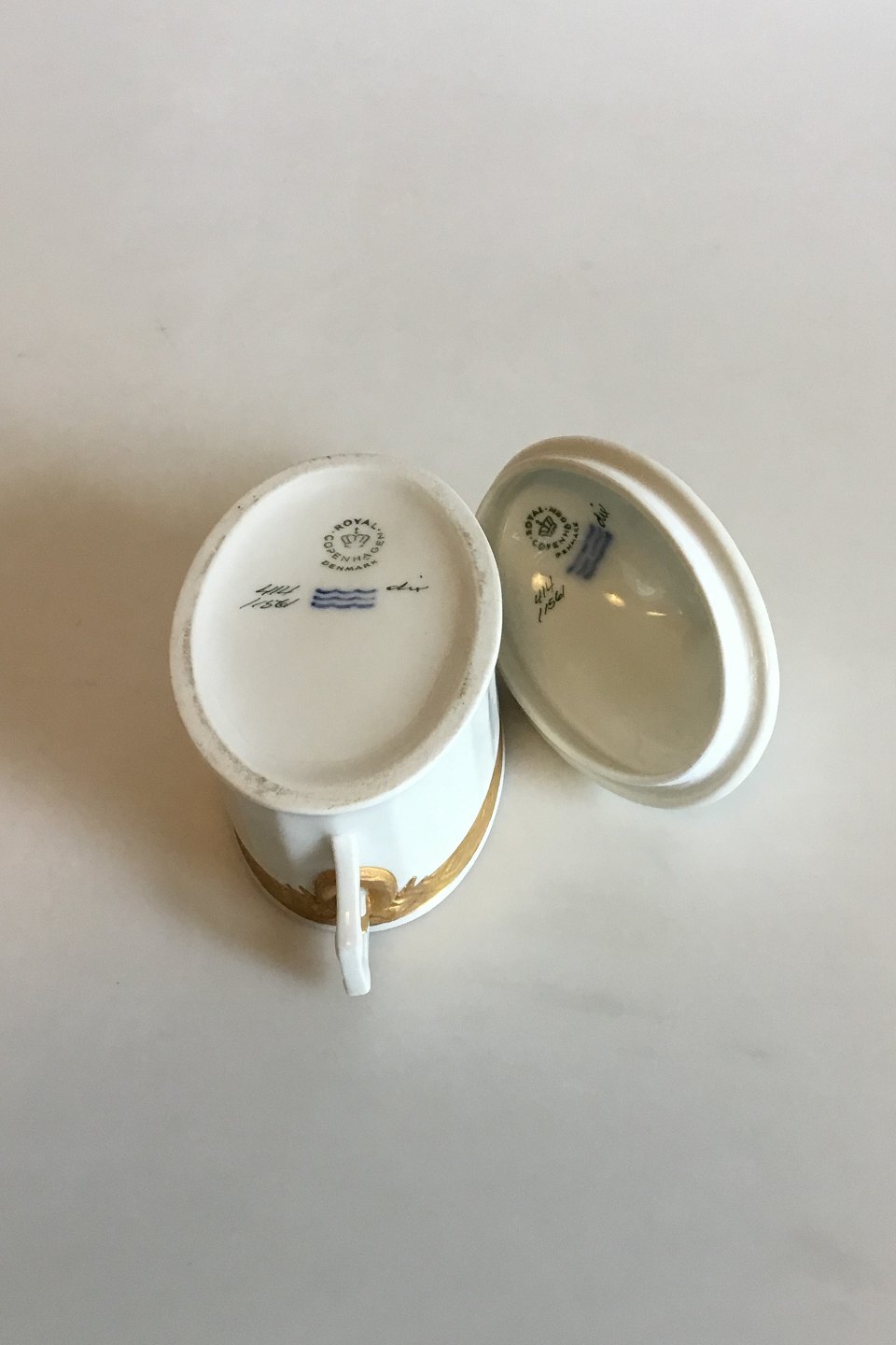 Royal Copenhagen Gold Fan Sugar Bowl No 414/11561. Measures 12.5 cm / 4 59/64 in.