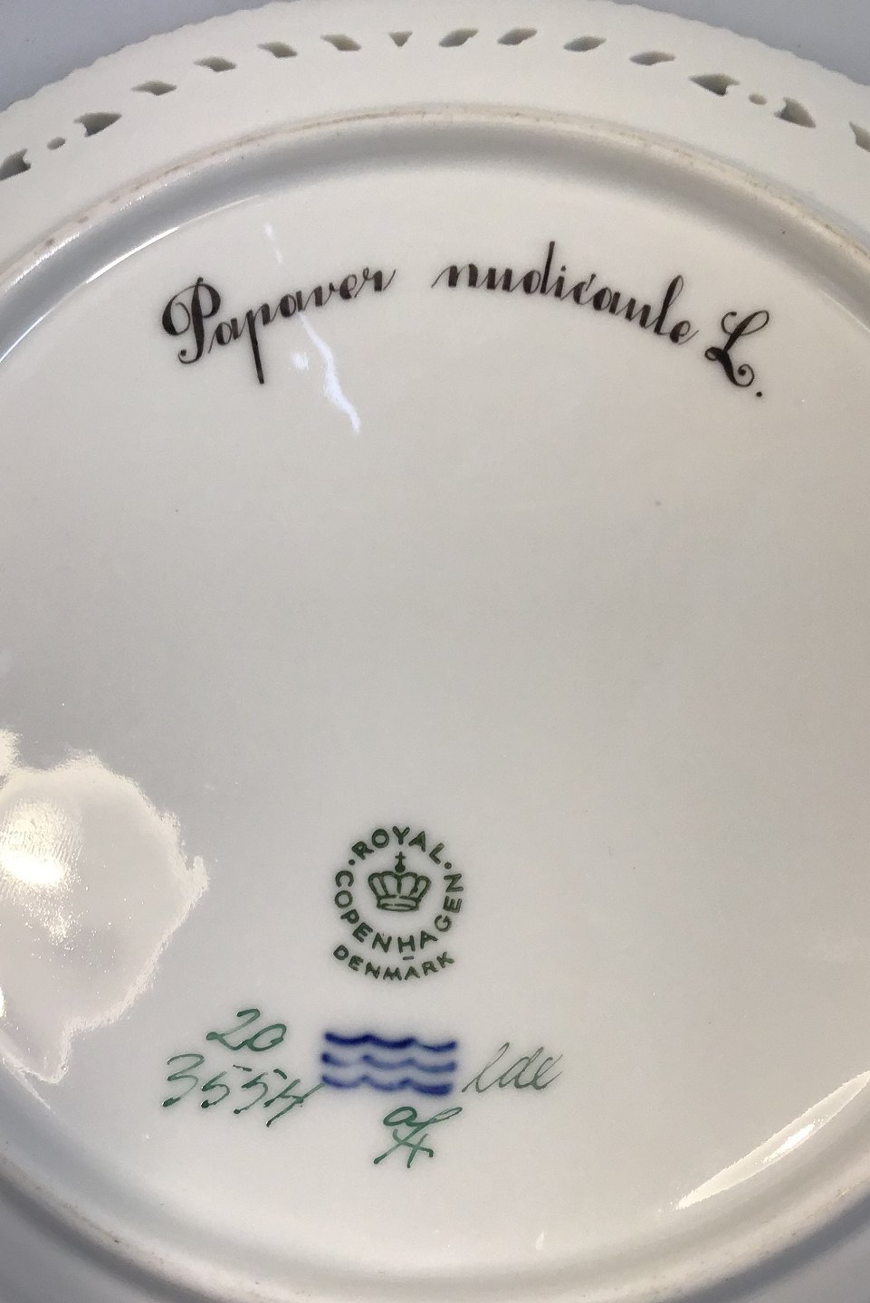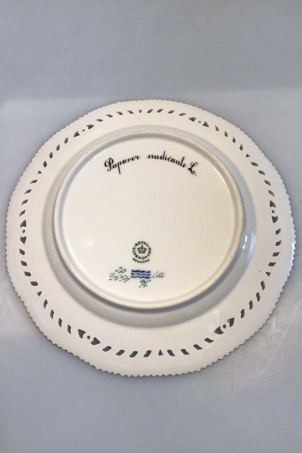 Royal Copenhagen Flora Danica Luncheon Plate No 20/3554 with Pierced Border. Latin Name: Papaver nudicaule L( Icelandic poppy). Measures 23 cm (9 1/16"). 1st Quality.