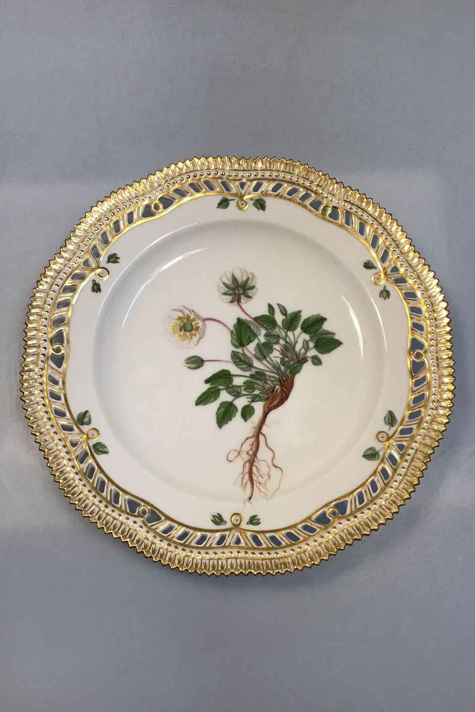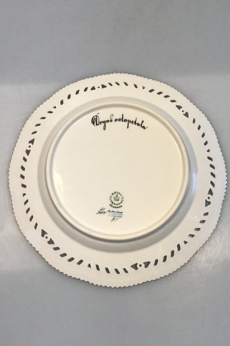 Royal Copenhagen Flora Danica Luncheon Plate No 20/3554 with Pierced Border. Latin Name: Dryas octopetala (Mountain avens). Measures 23 cm (9 1/16"). 1st Quality.