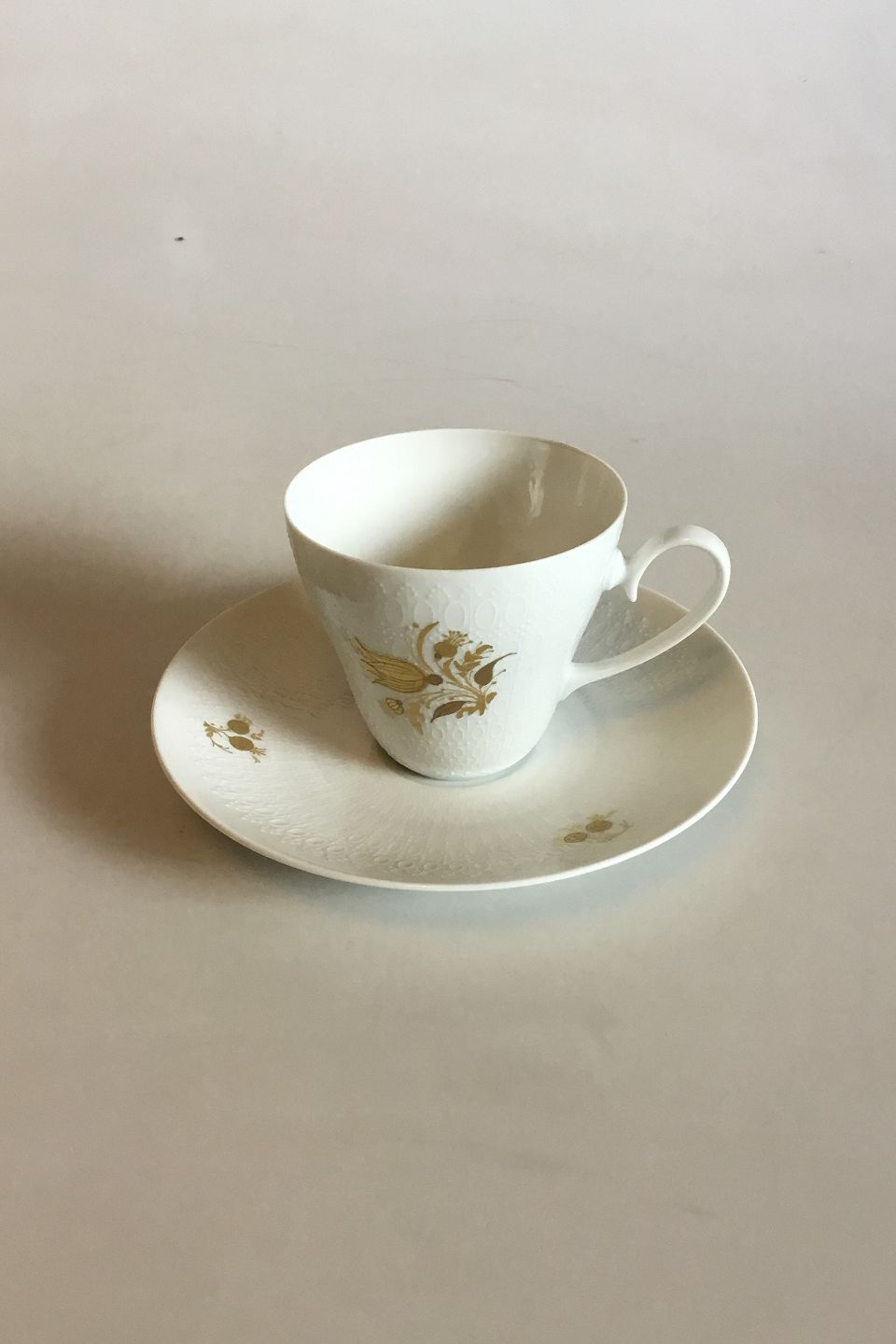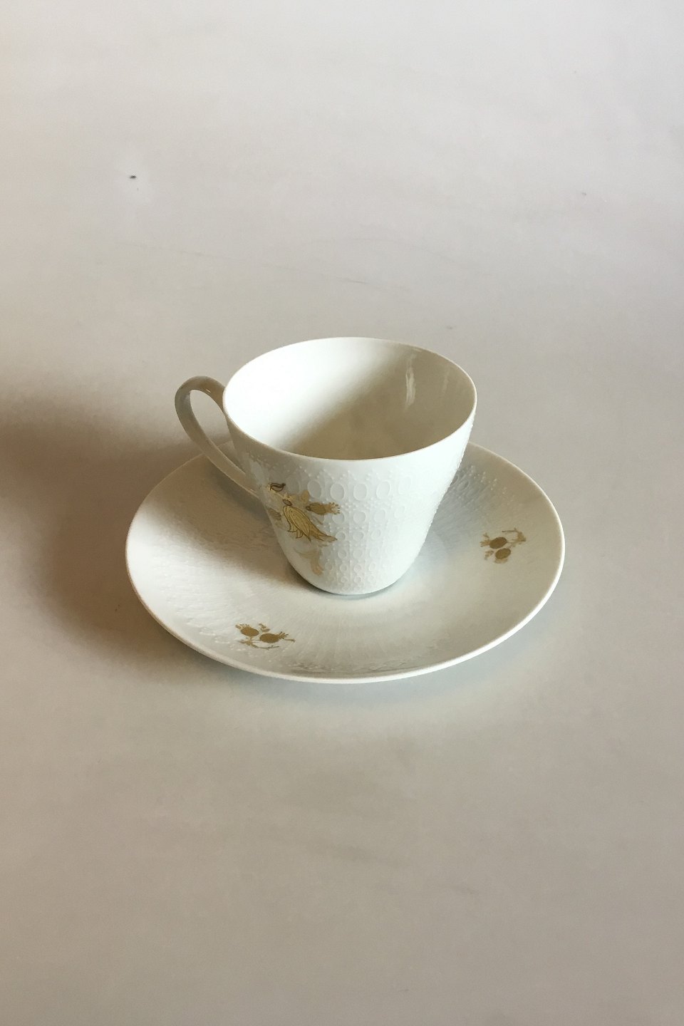 Bjorn Wiinblad/Rosenthal Romanze Classic Rose Coffee Cup and Saucer. Measures Cup: 7.1 cm / 2 51/64 in. x 8.2 cm / 3 15/64 in. Saucer: 15.5 cm / 6 7/64 in.