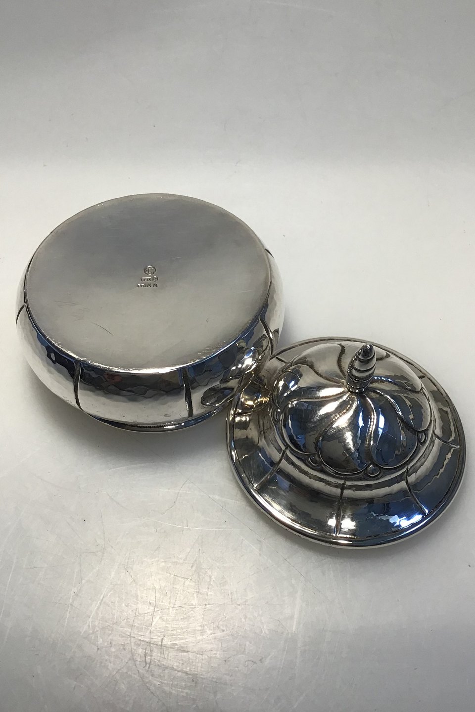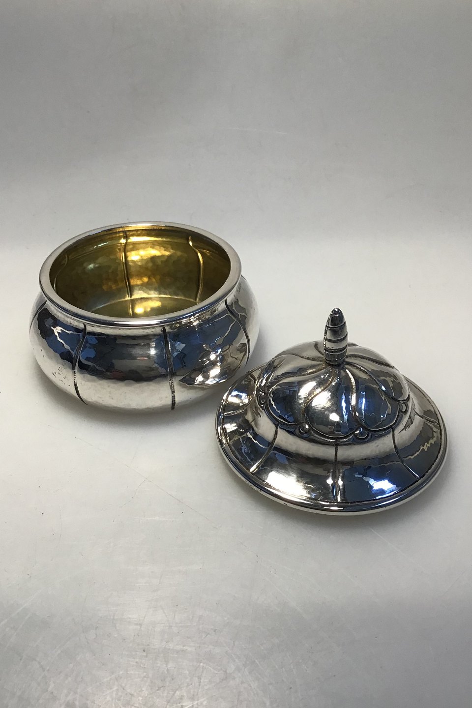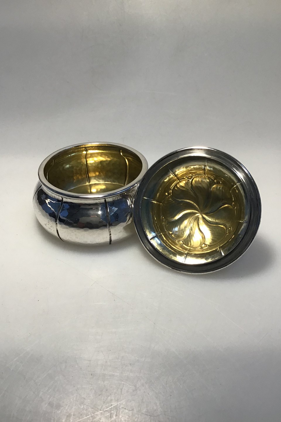 Erik Magnussen Sølv Lågdåse Indvendigt forgyldt H 8.7 cm Diam 8.7 cm Vægt 146 gr
