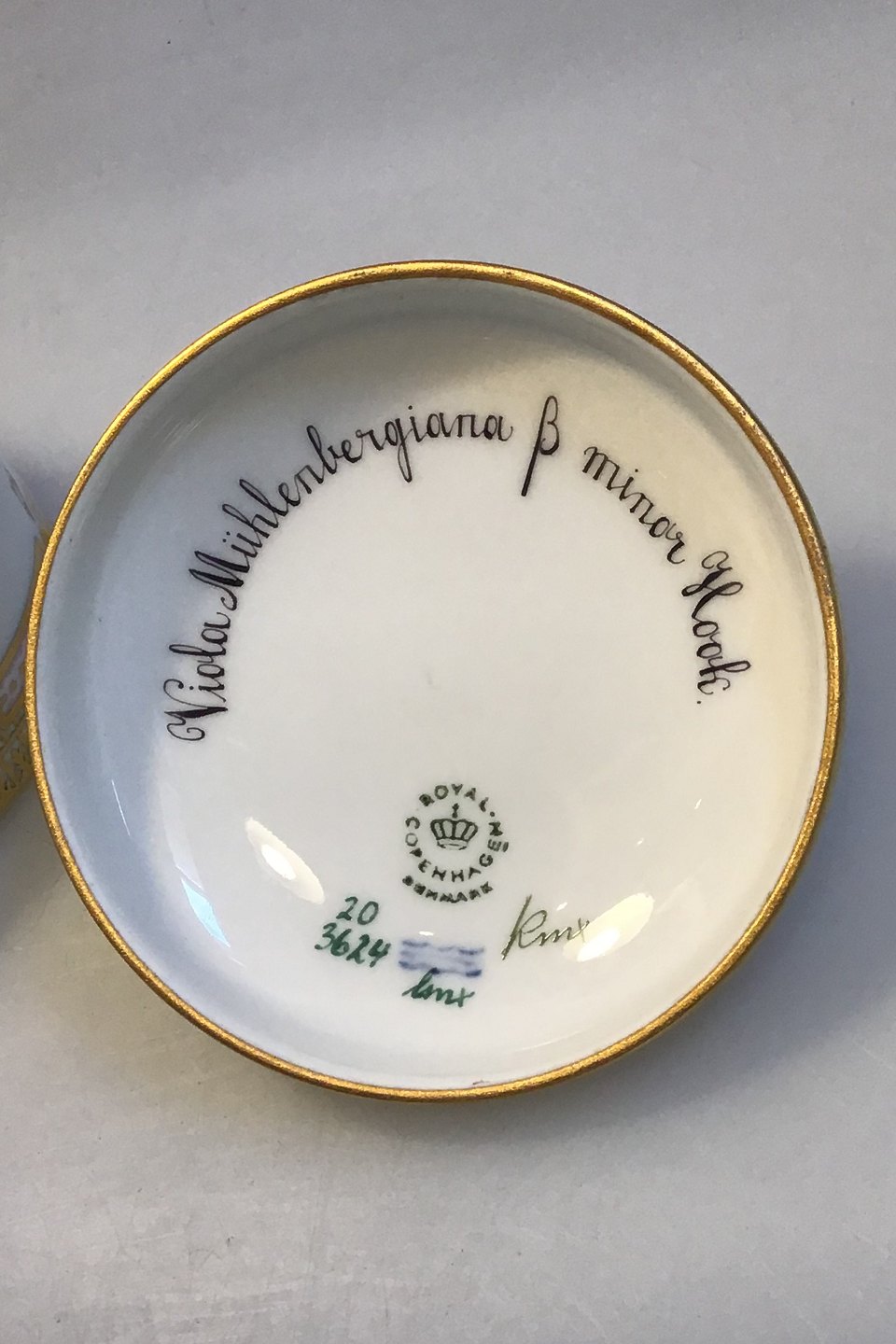 Royal Copenhagen Flora Danica Sugar Bowl No 20/3624 Latin Name: Viola Mühlenbergiana B Minor Hook(Viola/Violet). Measures 7.9 cm(3.11 in) Diam