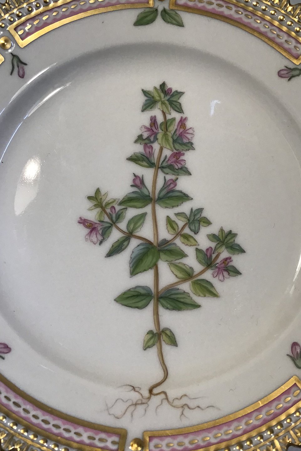Royal Copenhagen Flora Danica Kagetallerken No 20/3552. Latinsk Navn: Euphrasia officinalis L(Kalk-øjentrøst) Måler 14,3 cm