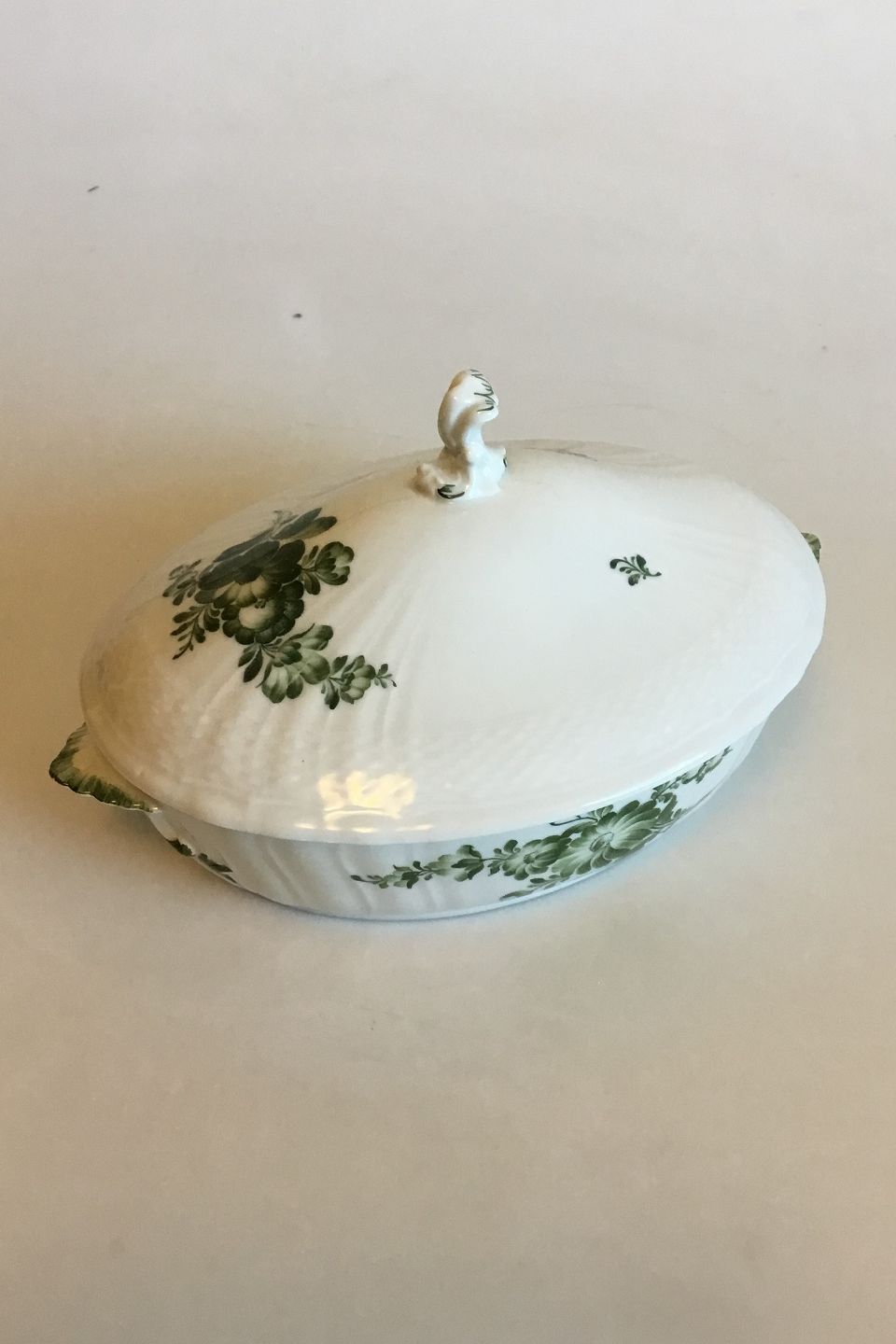 Royal Copenhagen Grøn Blomst Svejfet Oval lågskål No 1702
