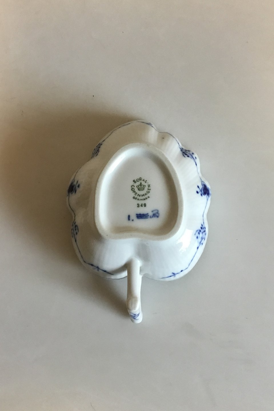 Royal Copenhagen Blue Fluted Leaf Shaped Dish No 349. Measures 13.5 cm / 5 5/16 in.