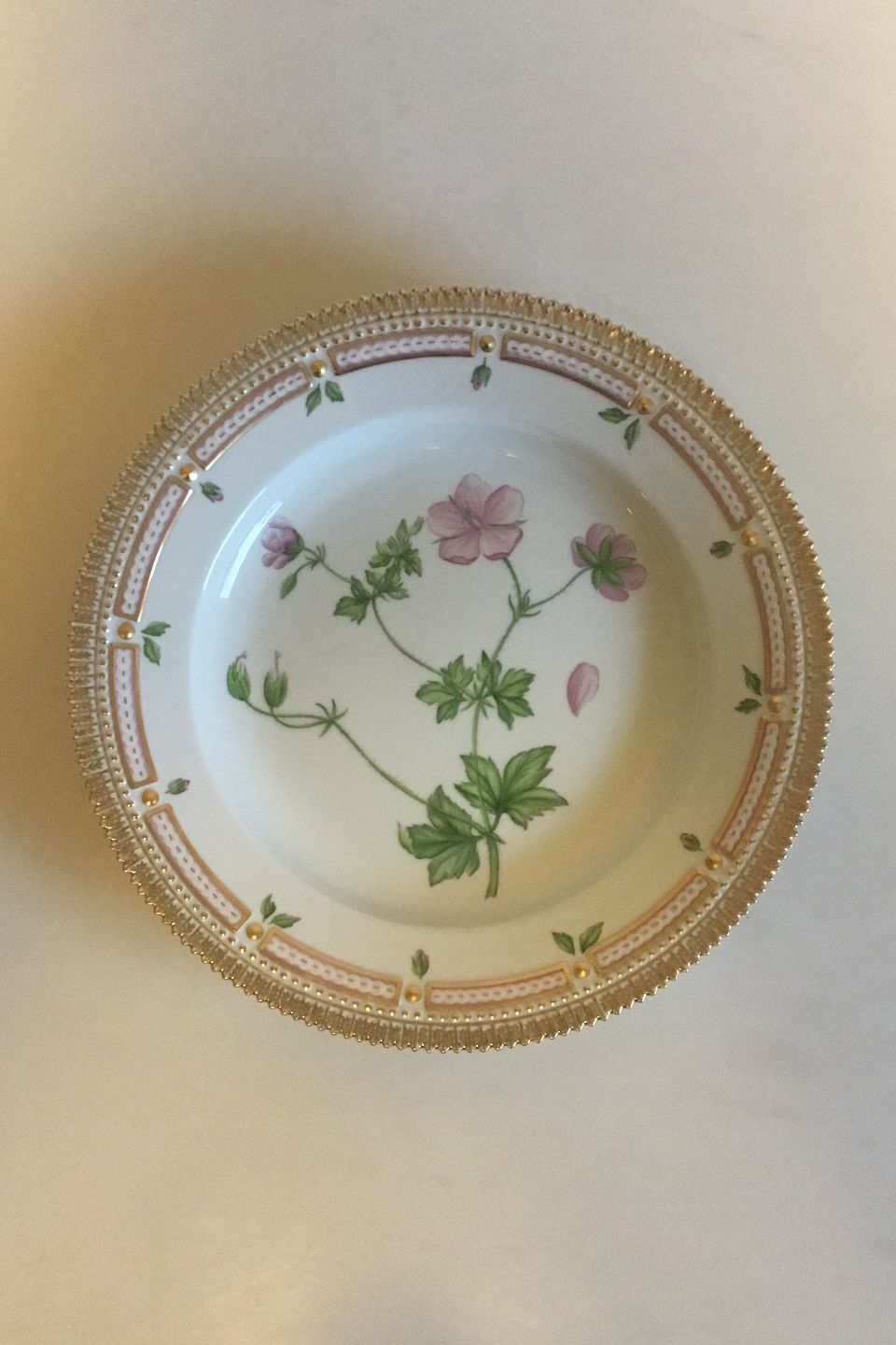 Royal Copenhagen Flora Danica Plate No 20/3549. Latin Name: Geranium palustre L. Measures 25.8 cm / 10 5/32 in.