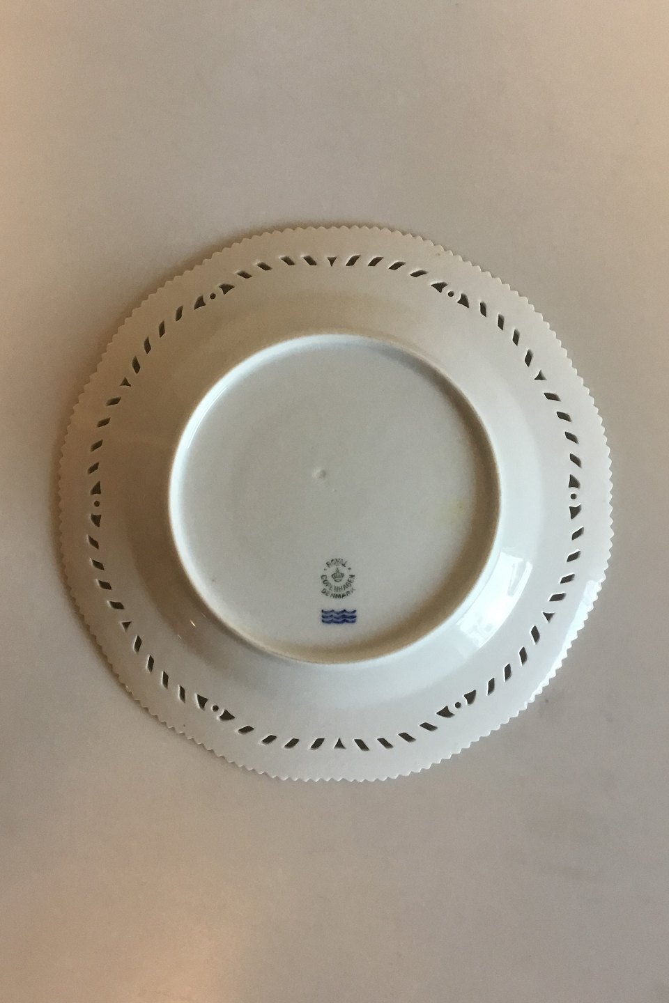 Royal Copenhagen Hvid Flora Danica / Perlestel Tallerken med gennembrudt kant No. 3554. Måler 23 cm. 2 sortering, med små afslag.