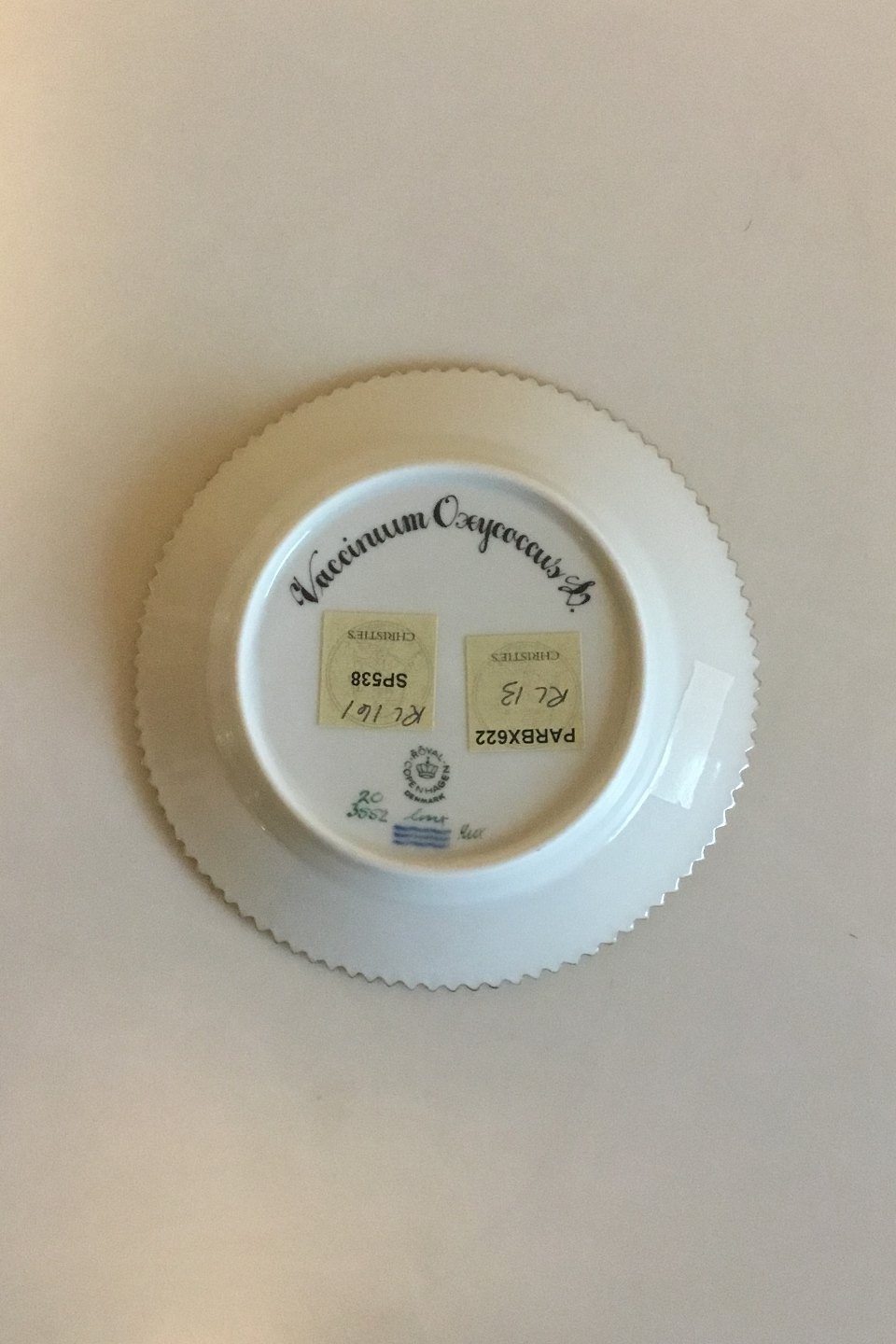 Royal Copenhagen Flora Danica Kagetallerken No 20/3552. Latinsk tekst: Vaccinum oxycoccus L. Måler 14,3 cm. Afslag