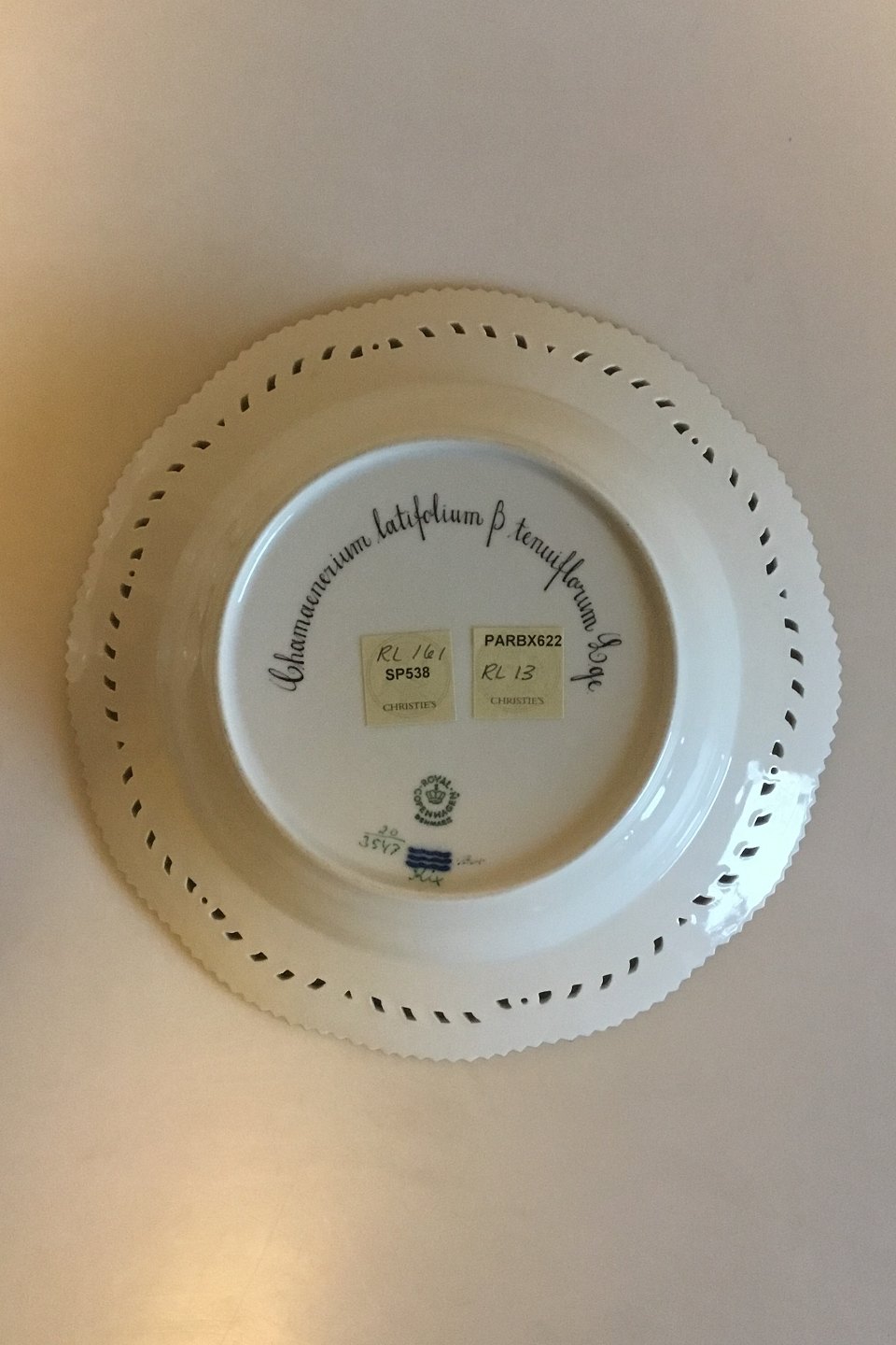 Royal Copenhagen Flora Danica Deep Plate with pierced border No 20/3547.