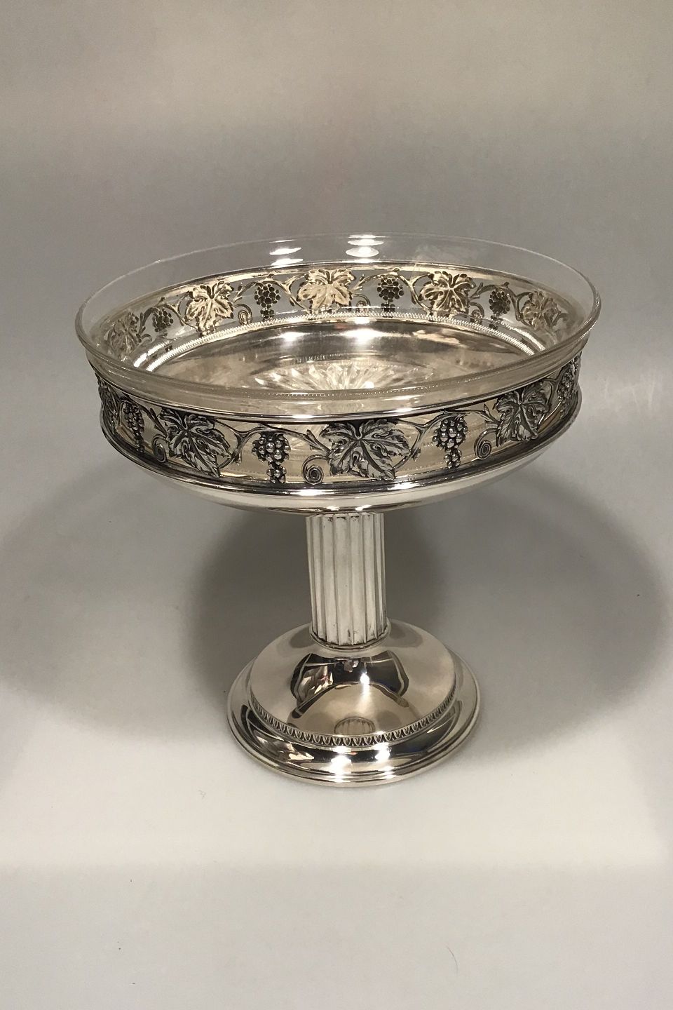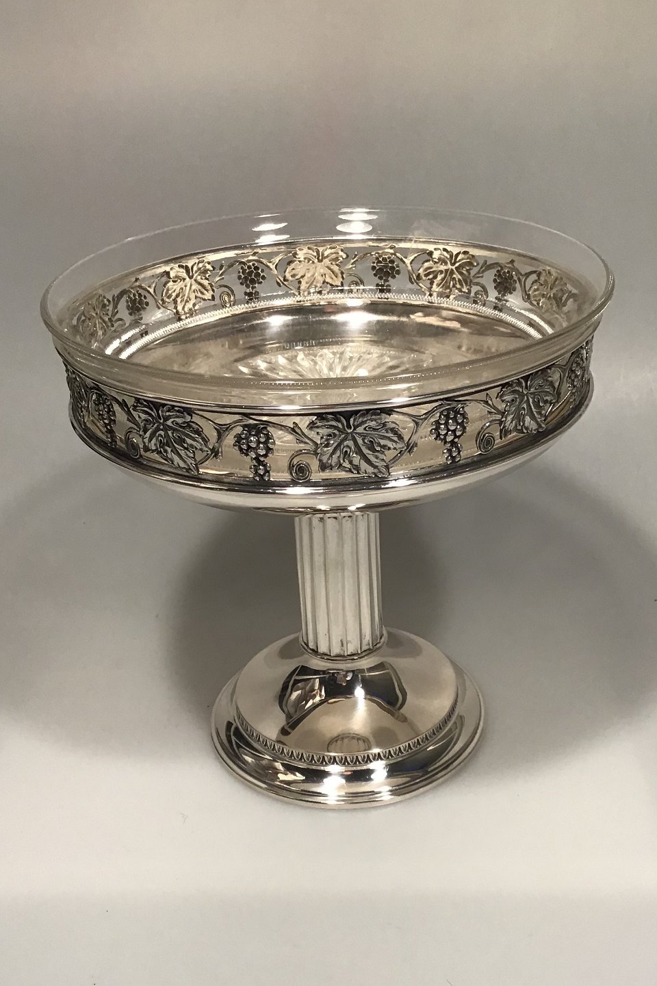A. Dragsted Sølv Opsats med drue bort og glasindsats H 19 cm Diam 19 cm Samlet vægt 917 gr