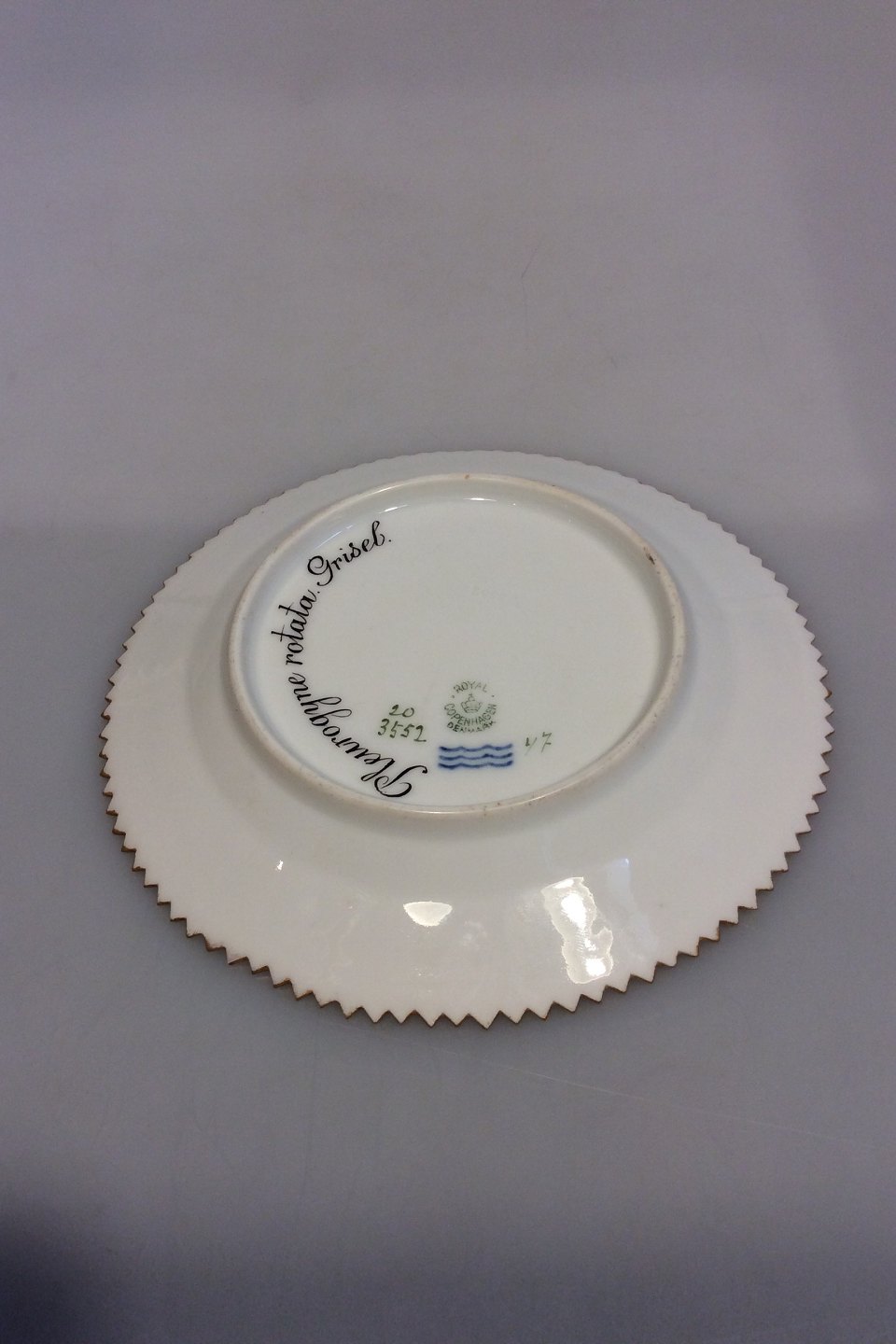 Royal Copenhagen Flora Danica Kagetallerken No 20/3552. Latinsk tekst: Pleurogyne rotata Griseb.. Måler 14,3 cm.