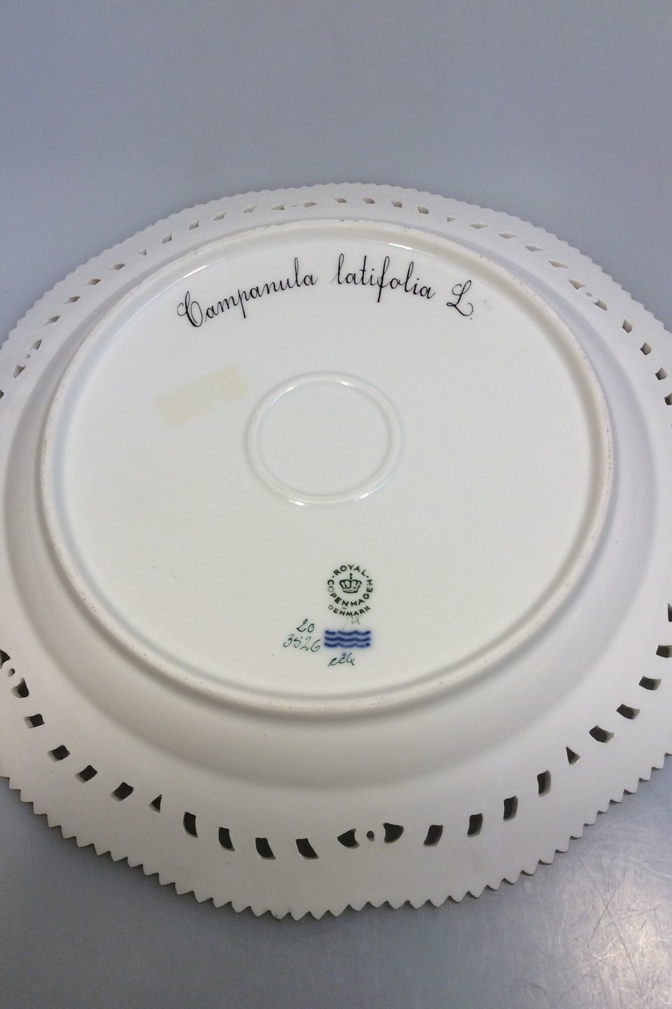 Royal Copenhagen Flora Danica Plate with pierced border No 20/3526. Measures 27 cm / 10 5/8 in. Latin name: Campanula latifolia L