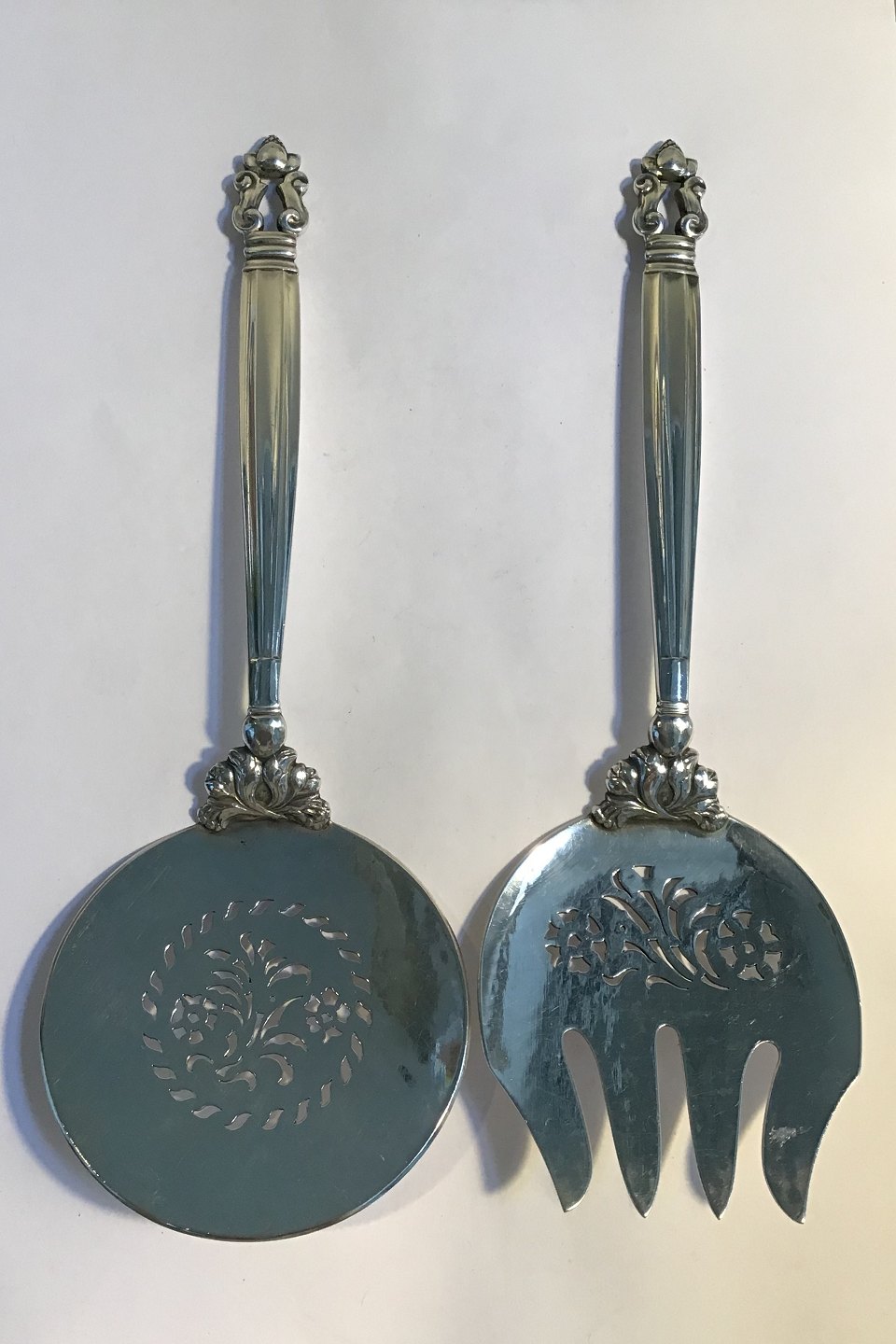 Georg Jensen Sølv Konge Tærte serveringssæt No 205/205B (Gennembrudt) (2) Måler 23 cm(Svenske import stempler 1929)