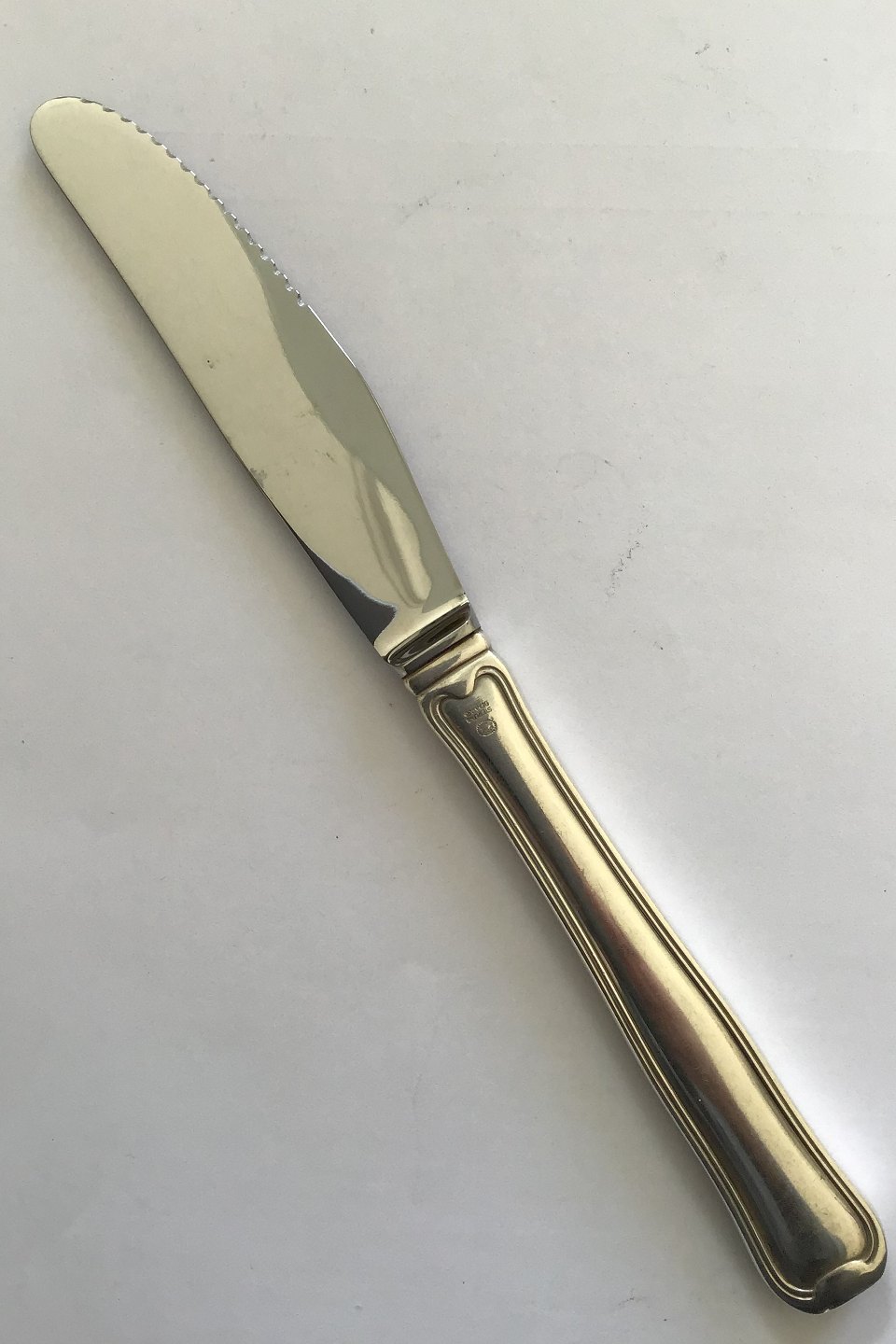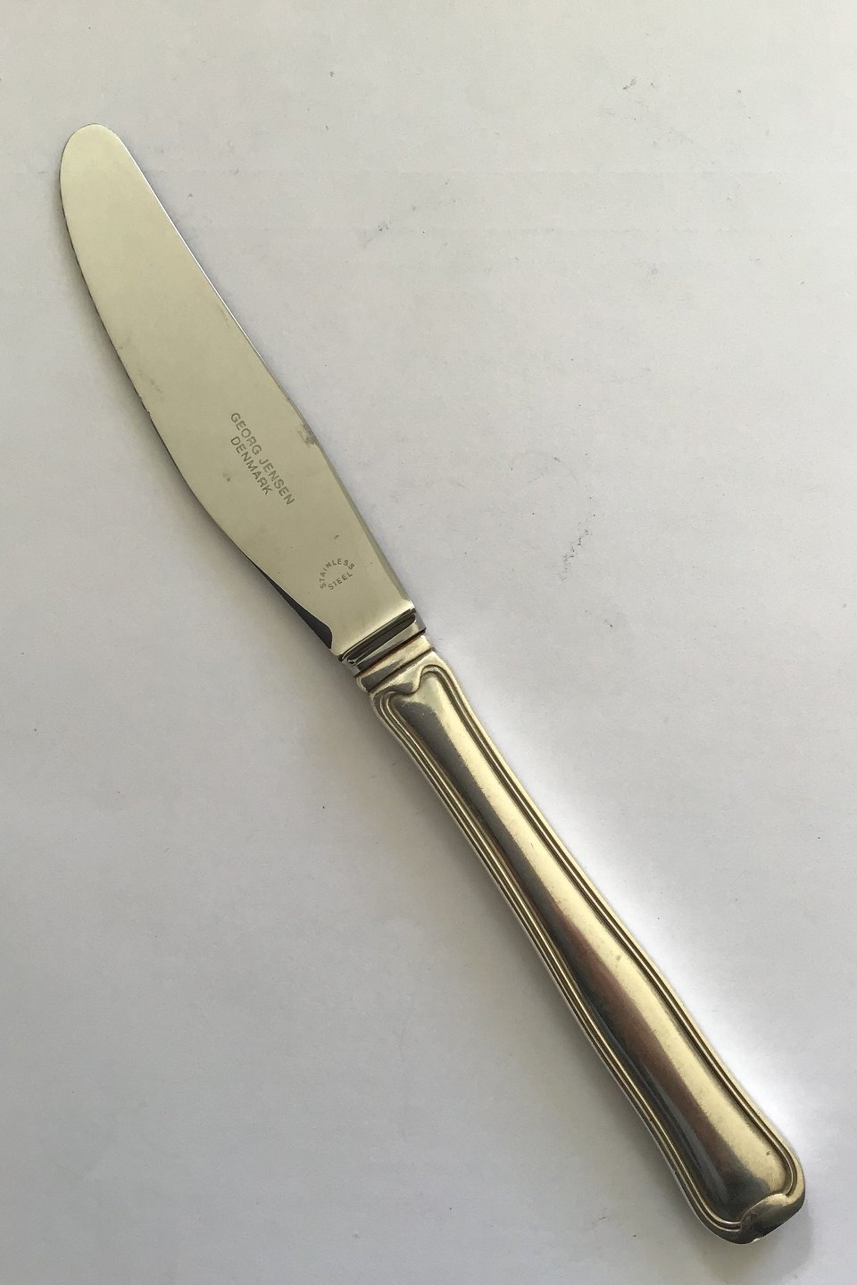 Georg Jensen Sterling Silver Dobbeltriflet Middagskniv No 014 (Langt skaft, grill skær) Måler 22.2 cm
