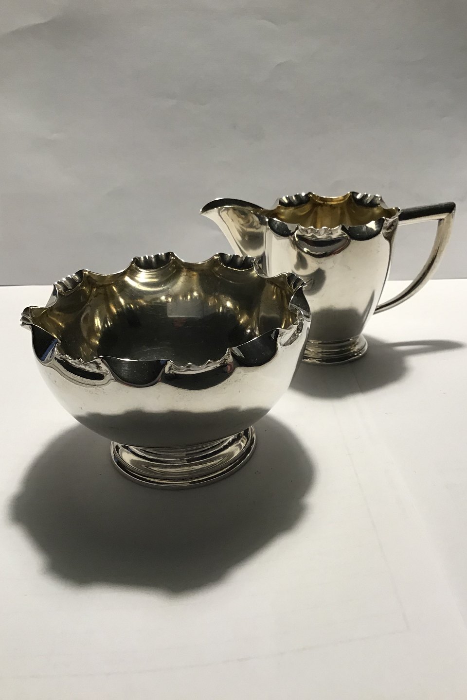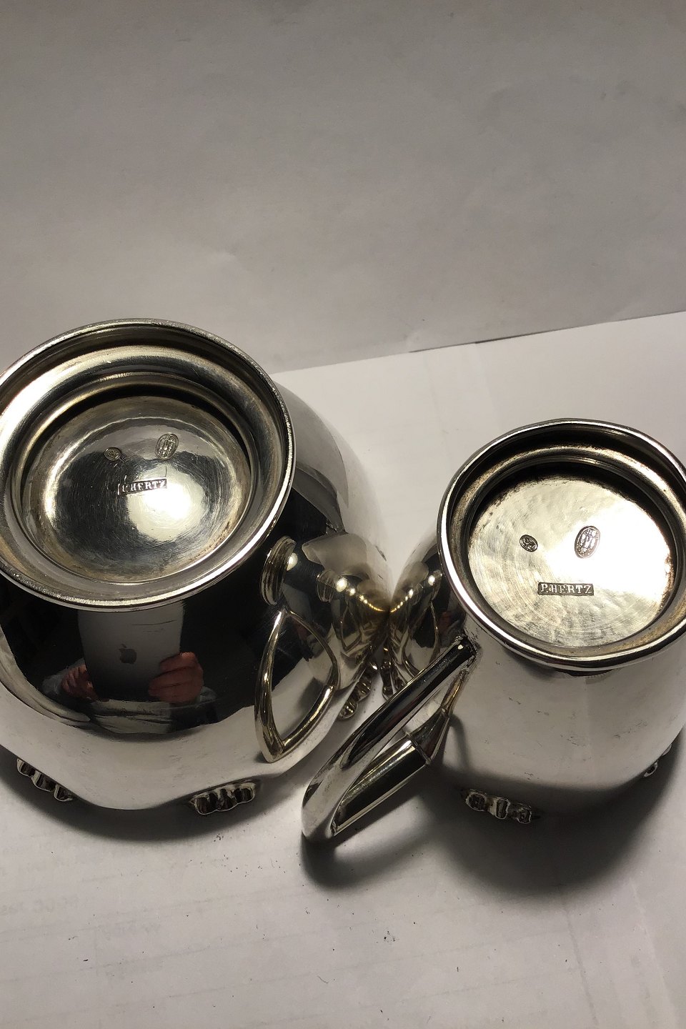 P Hertz Sølv Sukker og Flødesæt Måler H Flødekande 7.6 cm, Sukkerskål 6.5 cm Samlet vægt 164 gr