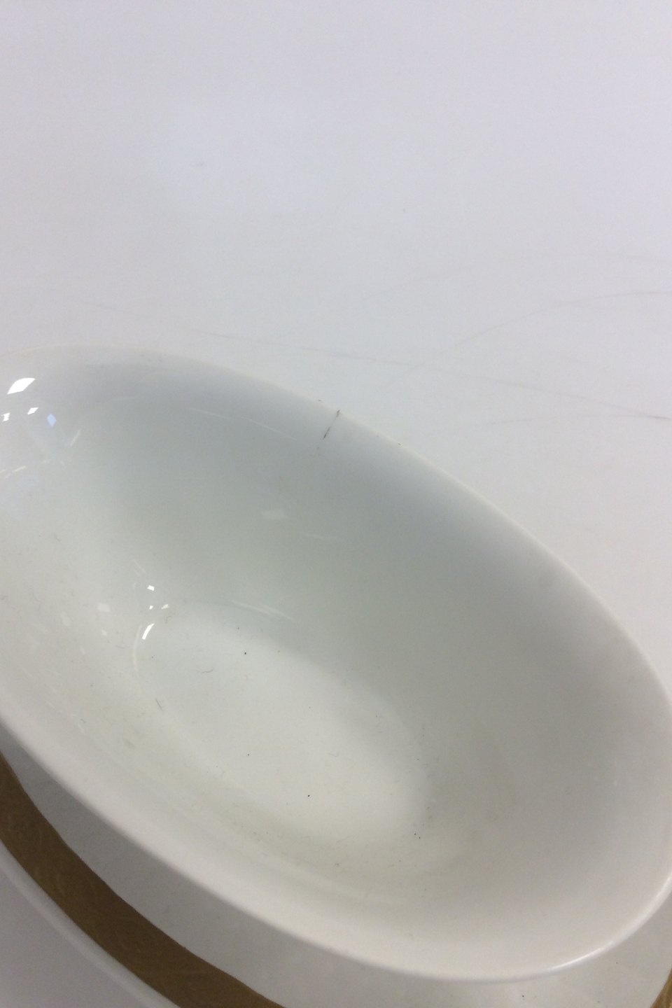 Royal Copenhagen Gold Fan Gravy Boat No. 11550. Measures 22 cm x 8 cm