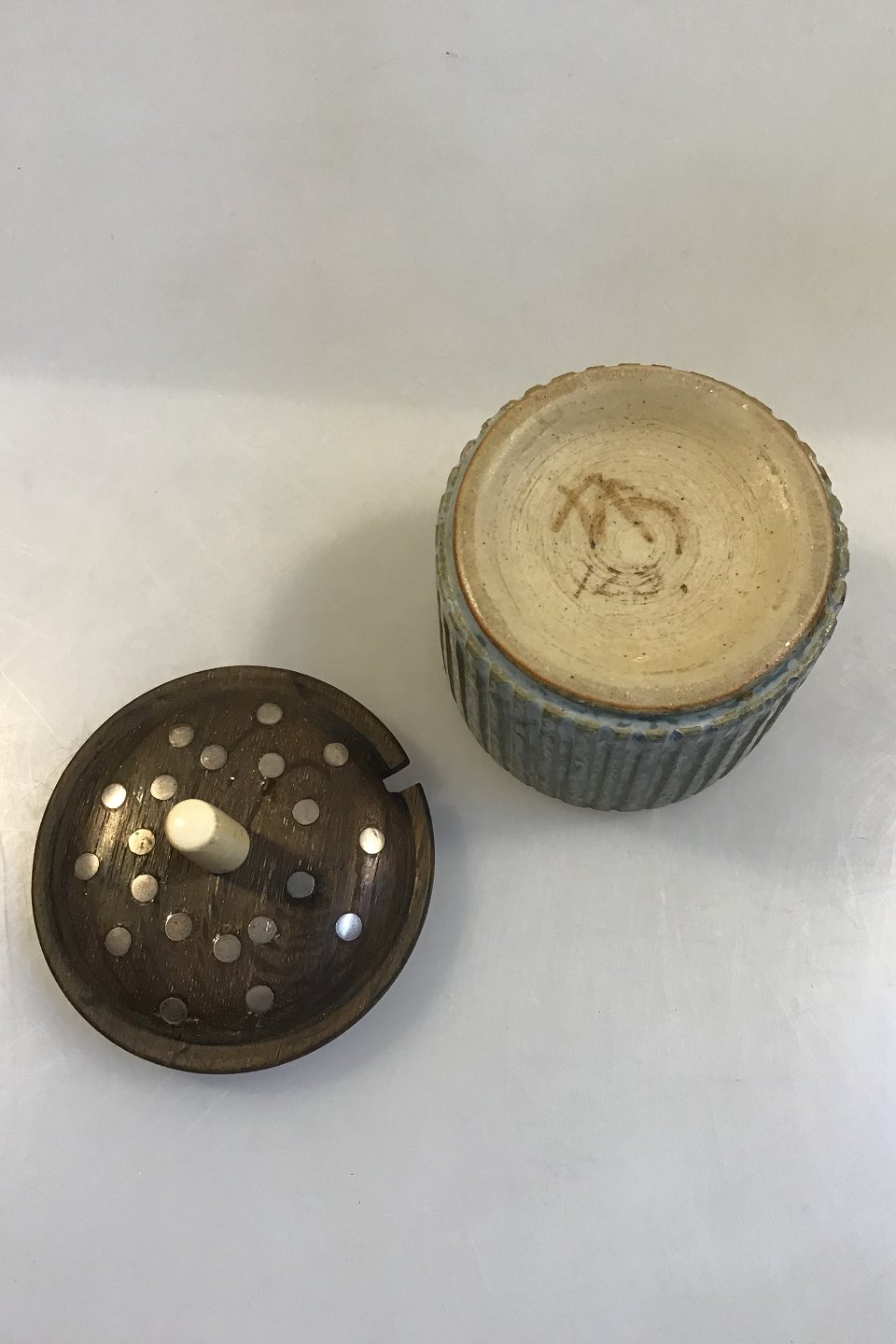 Arne Bang: Stoneware Jam Jar with Wodden Lid Signed monogram. Measures H 9 cm (3 35/64 in) incl finial