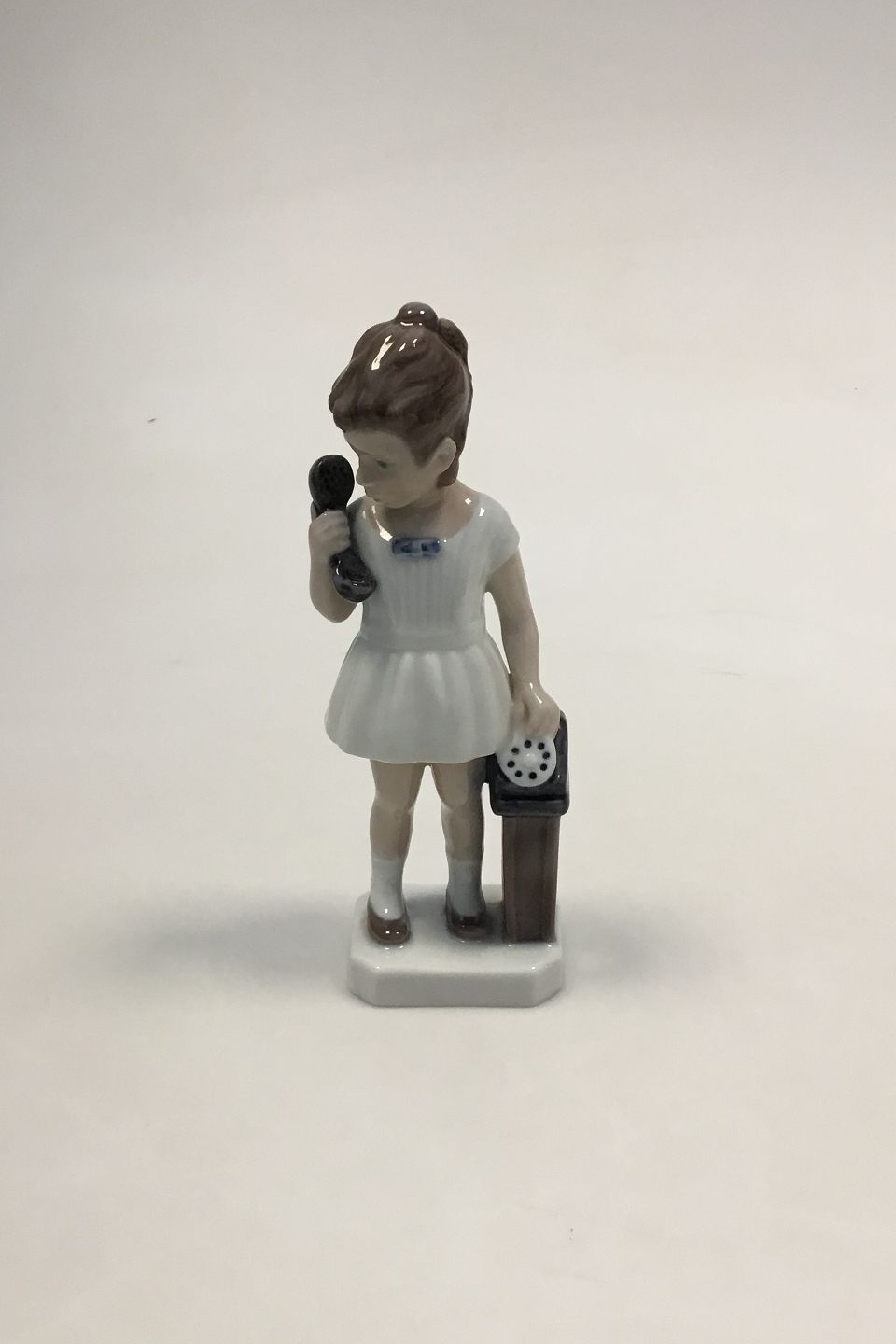 Lyngby Porcelæn Figur af pige med telefon, Gitte No 73. Måler 17 cm