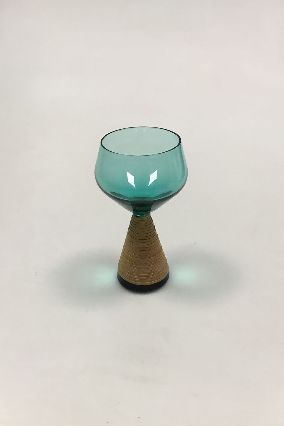 Kastrup Glasværk Opaline form Grønt Likørglas med Bambusbevikling. Jacob E. Bang 1957. Måler 11,4 cm