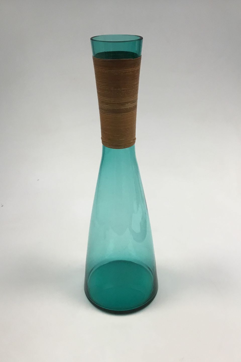 Kastrup Glasværk Opaline form Grøn Karaffel med bambusbevikling. Jacob E. Bang 1957. Måler 40 cm