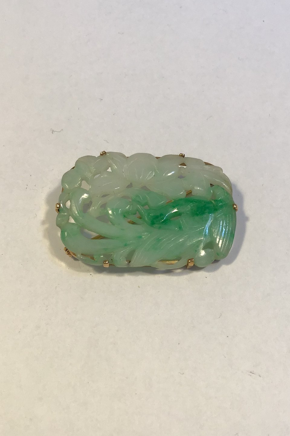 A Dragsted 18 K Gold Brooch with Jade (Bird and foliage) Measures 4.1 cm x 2.8 cm( 1 39/64 in x 1 7/64 in) Weight 10.7 gr/0.34 oz