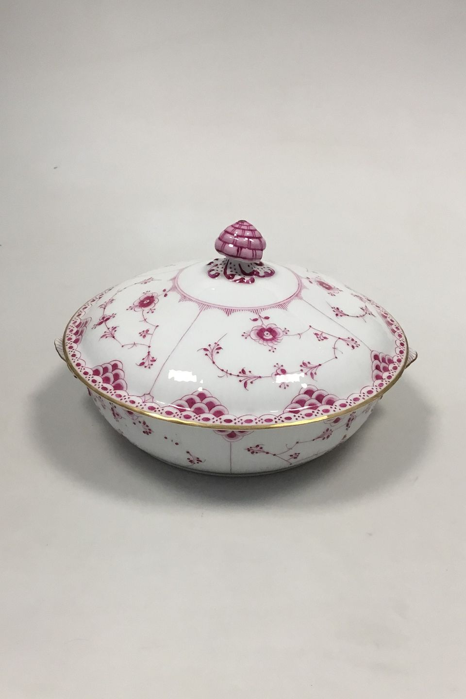 Royal Copenhagen Musselmalet Purpur med guldkant Halvblonde Lågfad No 2/620. Måler 13 cm x 22 cm