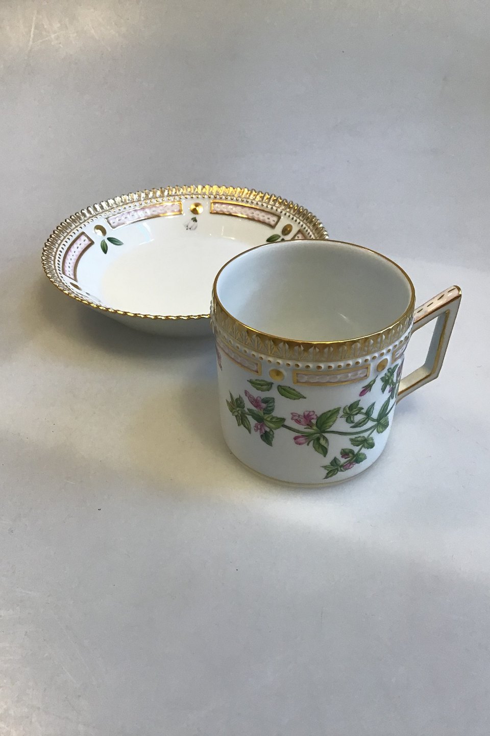 Royal Copenhagen Flora Danica Chocolate Cup No 054(3513) Latin Name: Euphrasia officinalis L Measures H cup: 6.5 cm (2.55 in). Diam saucer: 14 cm (5.51 in)