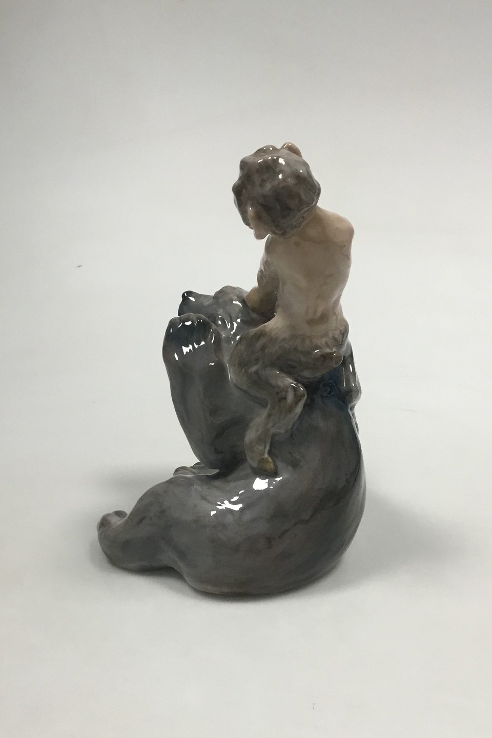 Royal Copenhagen Figur af faun der trækker en bjørn i øret No 1804. Designet af Knud Kyhn. Fra 1945. Måler 19 cm. 1. Sortering