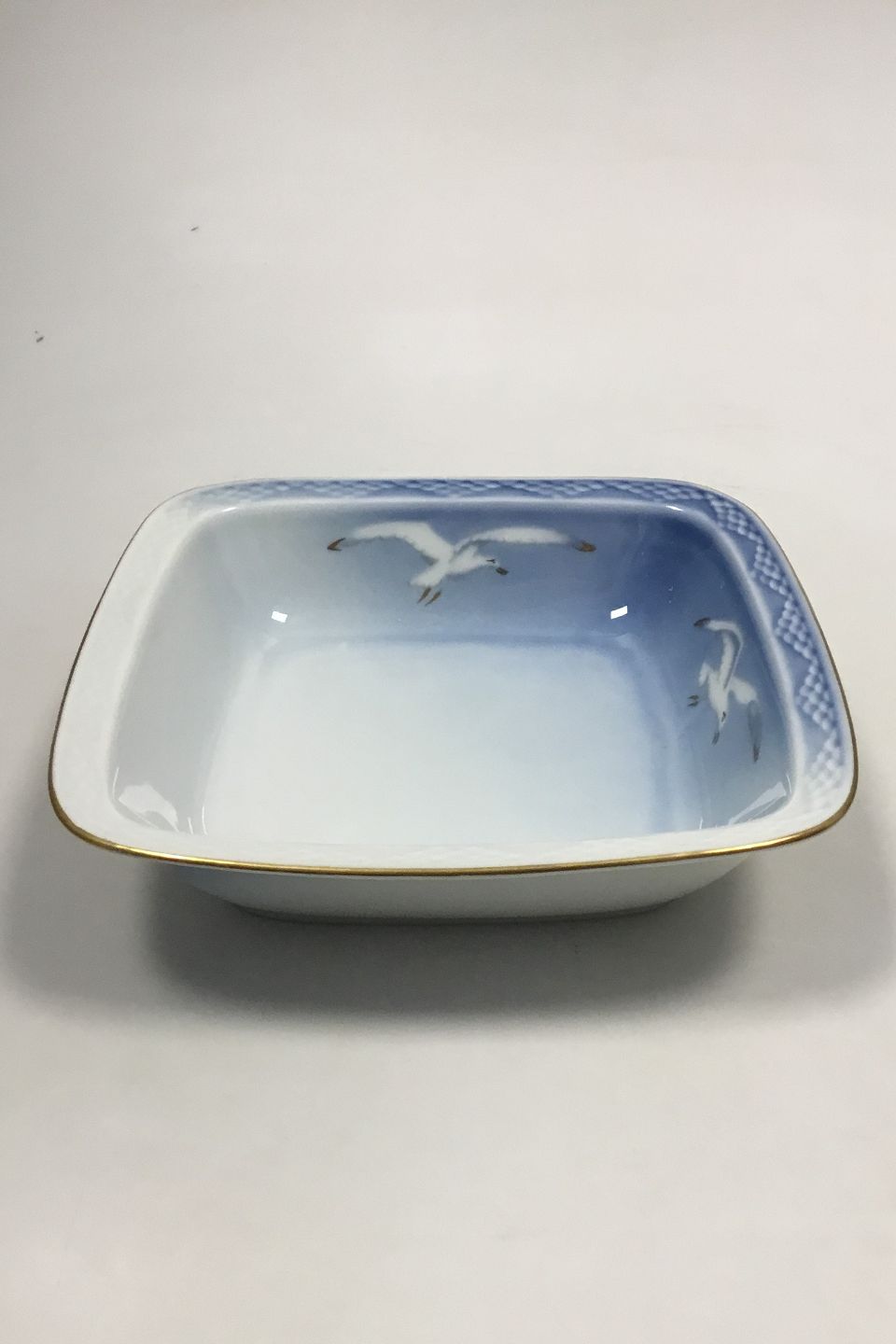 Bing & Grondahl Seagul with Gold Square Potato Bowl No 576. Measures 22 cm / 8 21/32 in. x 22 cm / 8 21/32 in.