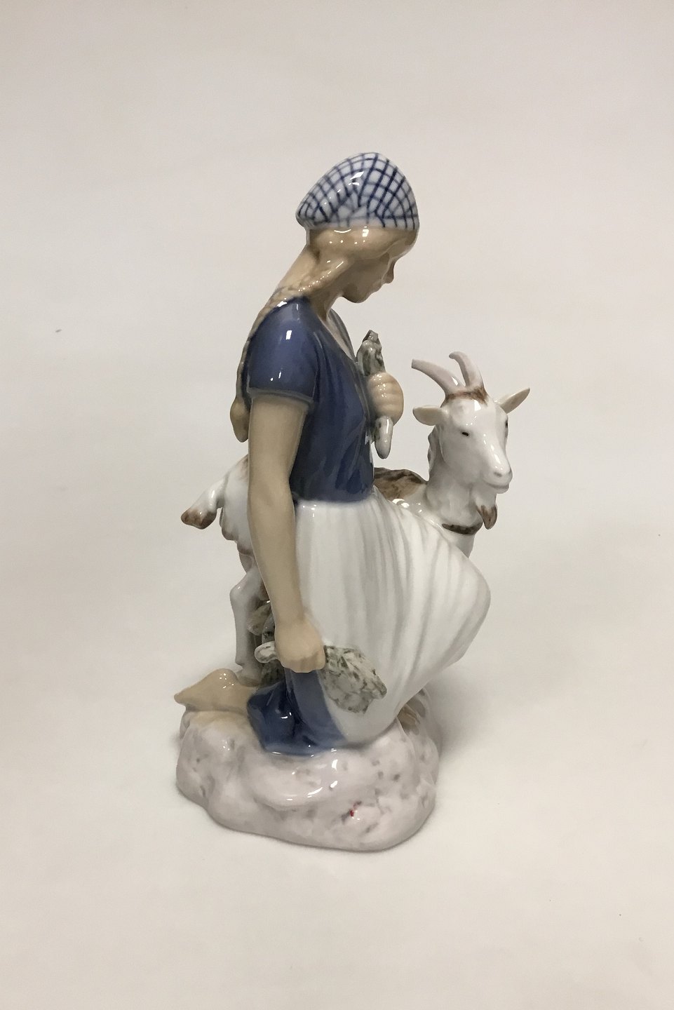 Bing & Grøndahl Figur af Pige med gedebuk No 2180. Designet og signeret af Axel Locher. lille afslag på det ene horn. Måler 18 cm