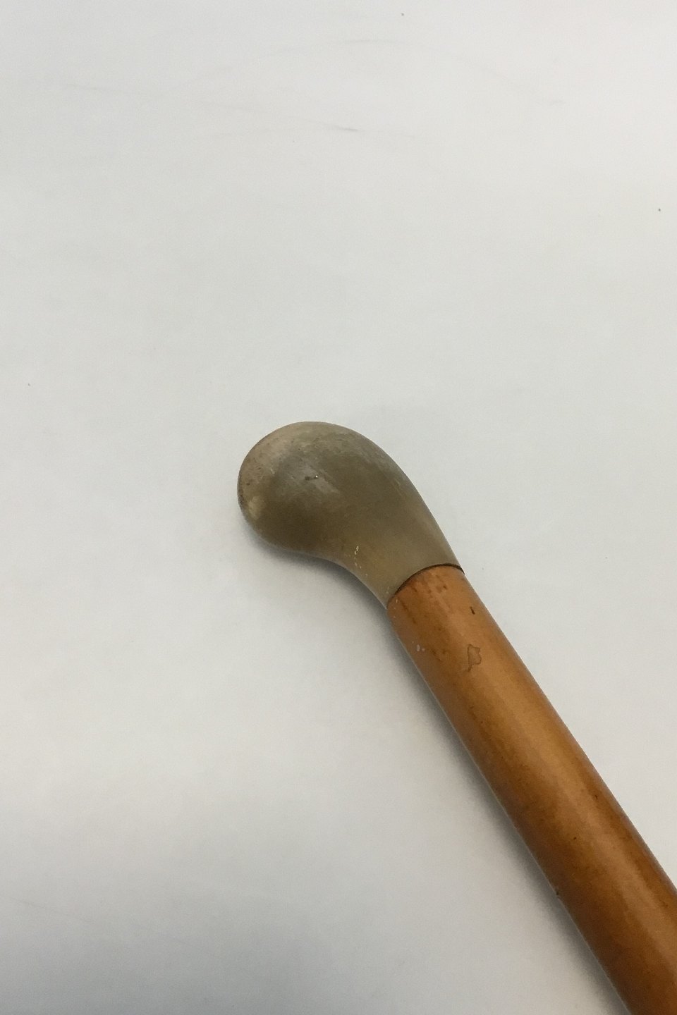 Antik stok af elmetræ med udskåret hoved af horn. Original dupsko af horn. 90,5 cm
