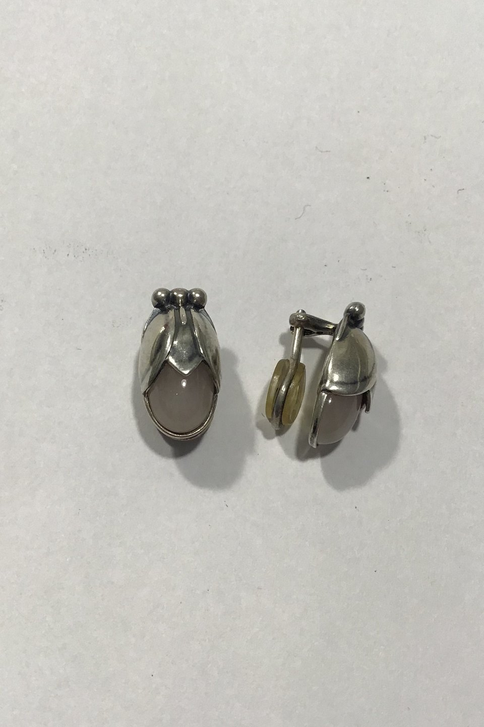 Georg Jensen Sterling Sølv Års Øreclips 2011 Rosa Quartz Måler 2 cm x 1 cm Samlet vægt 9.0 gr