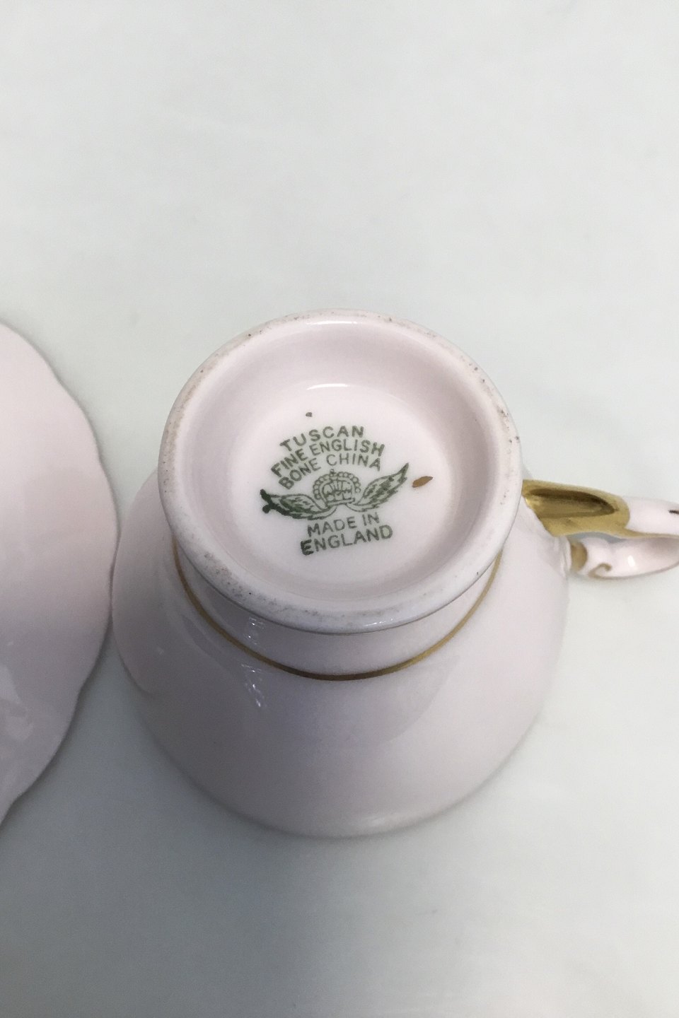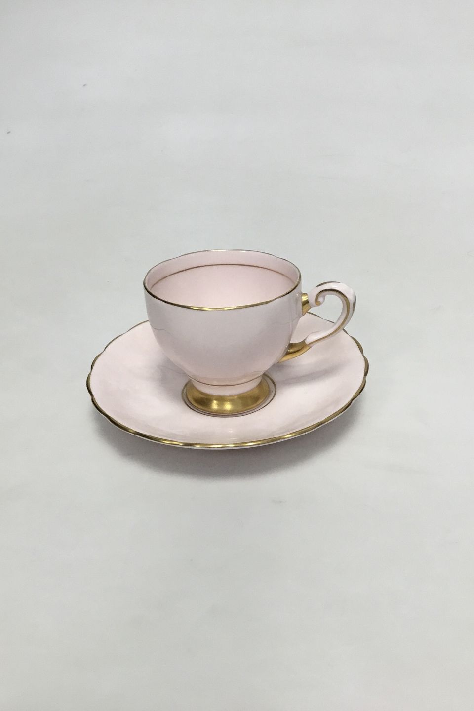 Engelsk, R H & S L Plant (Ltd) pink porcelæns kop og underkop, med guldkant. Mærket: "Tuscan Fine English Bone China, Made in England". H: 6 cm.