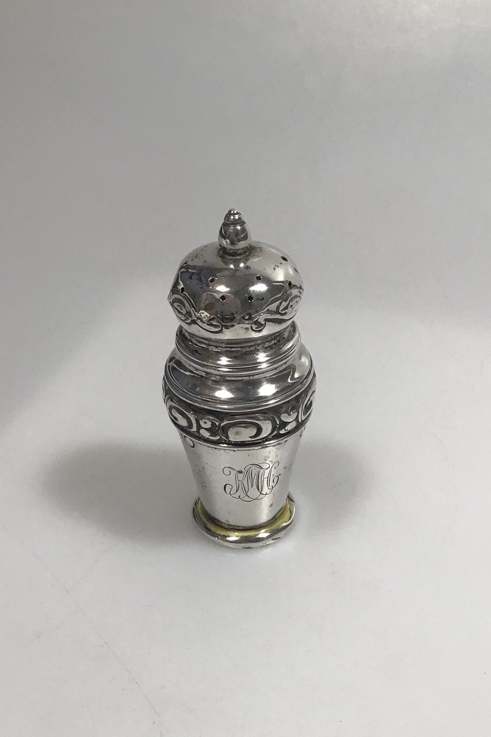 J Holm Sølv Salt/Strø bøsse Måler H 10 cm Vægt 42 gr (Gravering/Brugsspor)