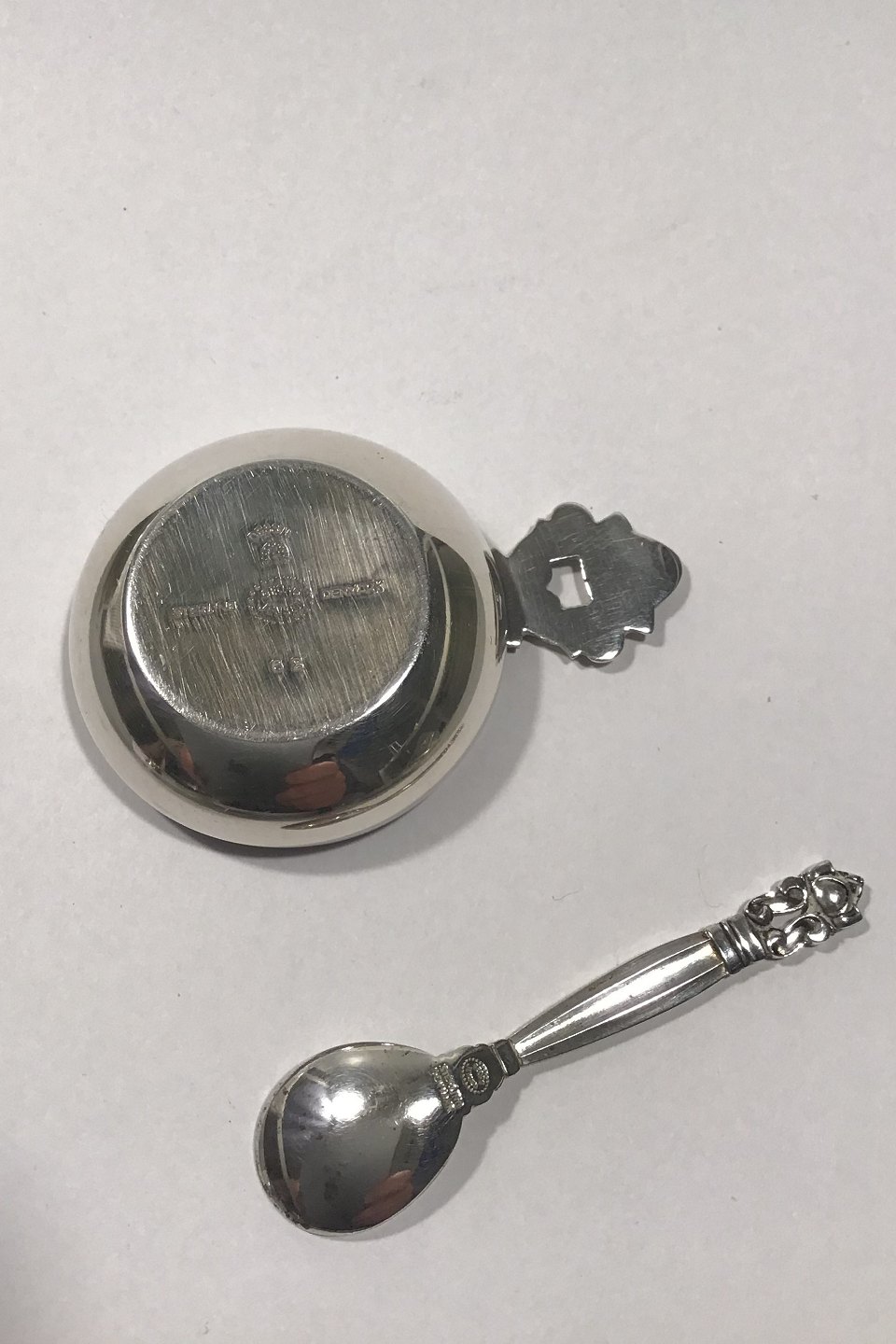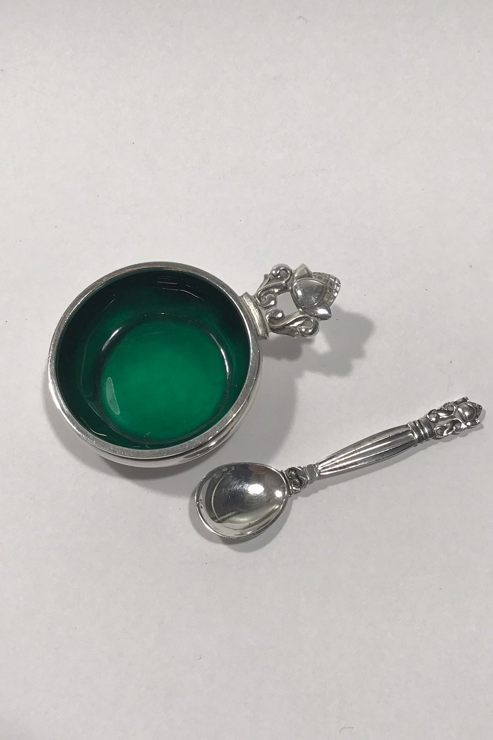 Georg Jensen Sterling Sølv Konge Saltkar No 62 (Grøn emalje) og Saltske Måler 4.1 cm Ske 6 cm