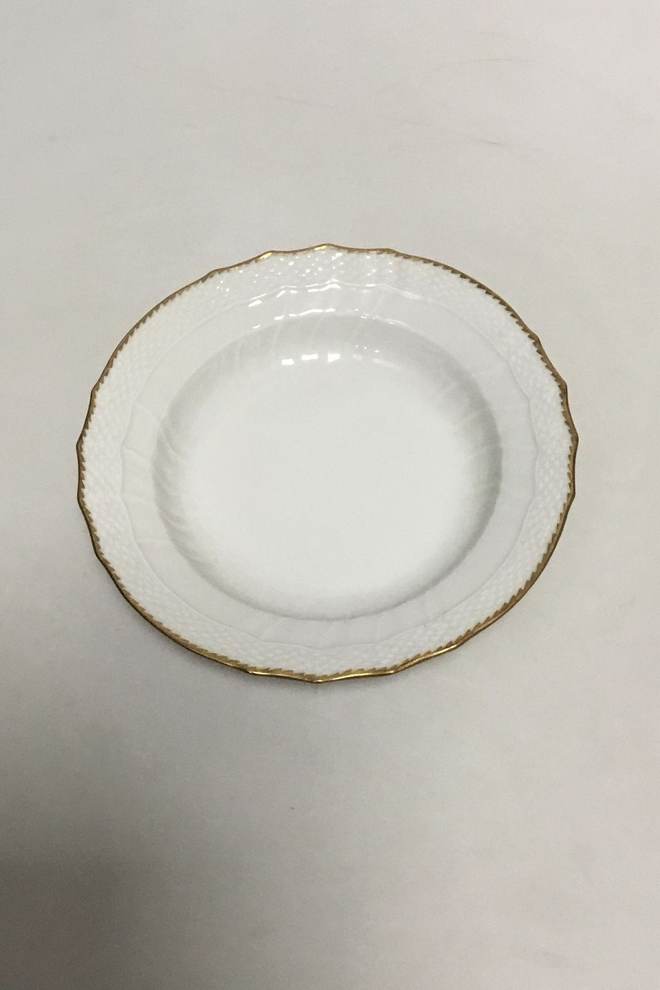Royal Copenhagen White Curved with serrated Gold edge(Pattern 387/ Josephine) Deep Plate No 1617. Measures 20,0 cm (7 7/8").