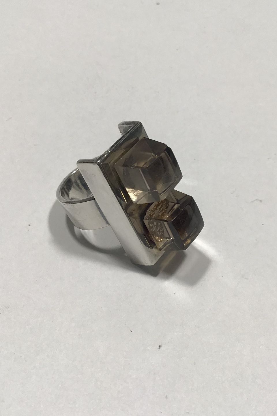 Hans Hansen Sterling Sølv m/ 2 Røgfarvede sten Ring Str 53 Måler 2.8 cm x 1.5 cm x 1.5 cm(Små afslag)