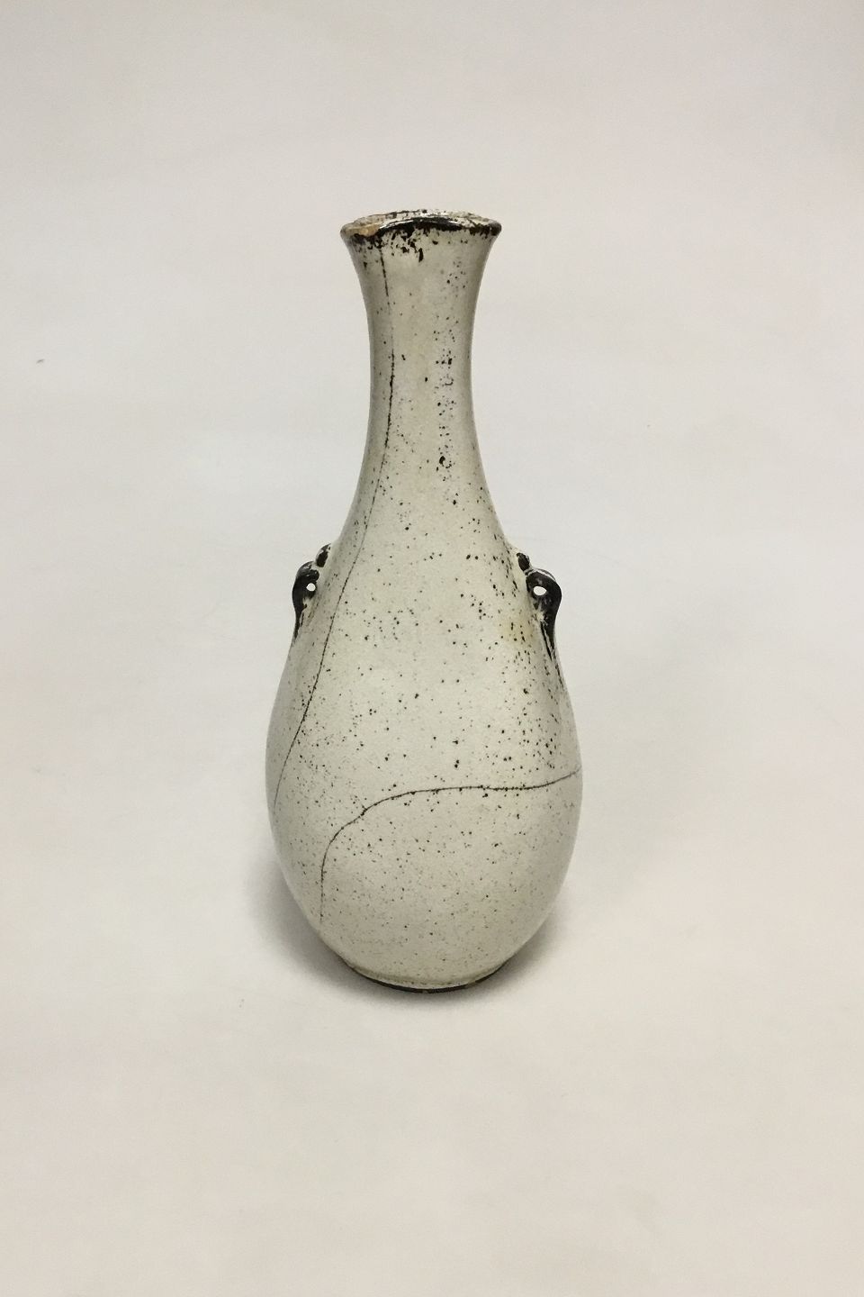 Kähler Stentøjsvase med hvid/sort dekoration. Designet af Svend Hammershøi. Måler 20 cm. Har diverse små afslag på top og bund