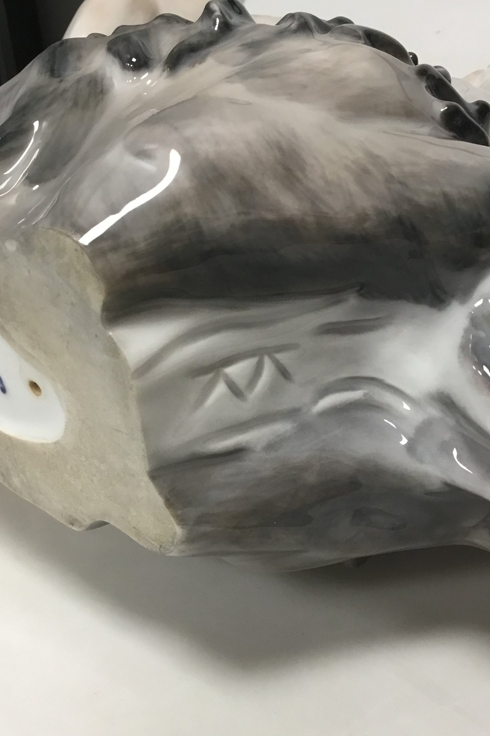 Royal Copenhagen Figur af Faun i kamp med en hane No 3083. Signeret KK for Knud Kyhn. Måler 30 cm x 32 cm. 1. Sortering og i rigtig flot stand.