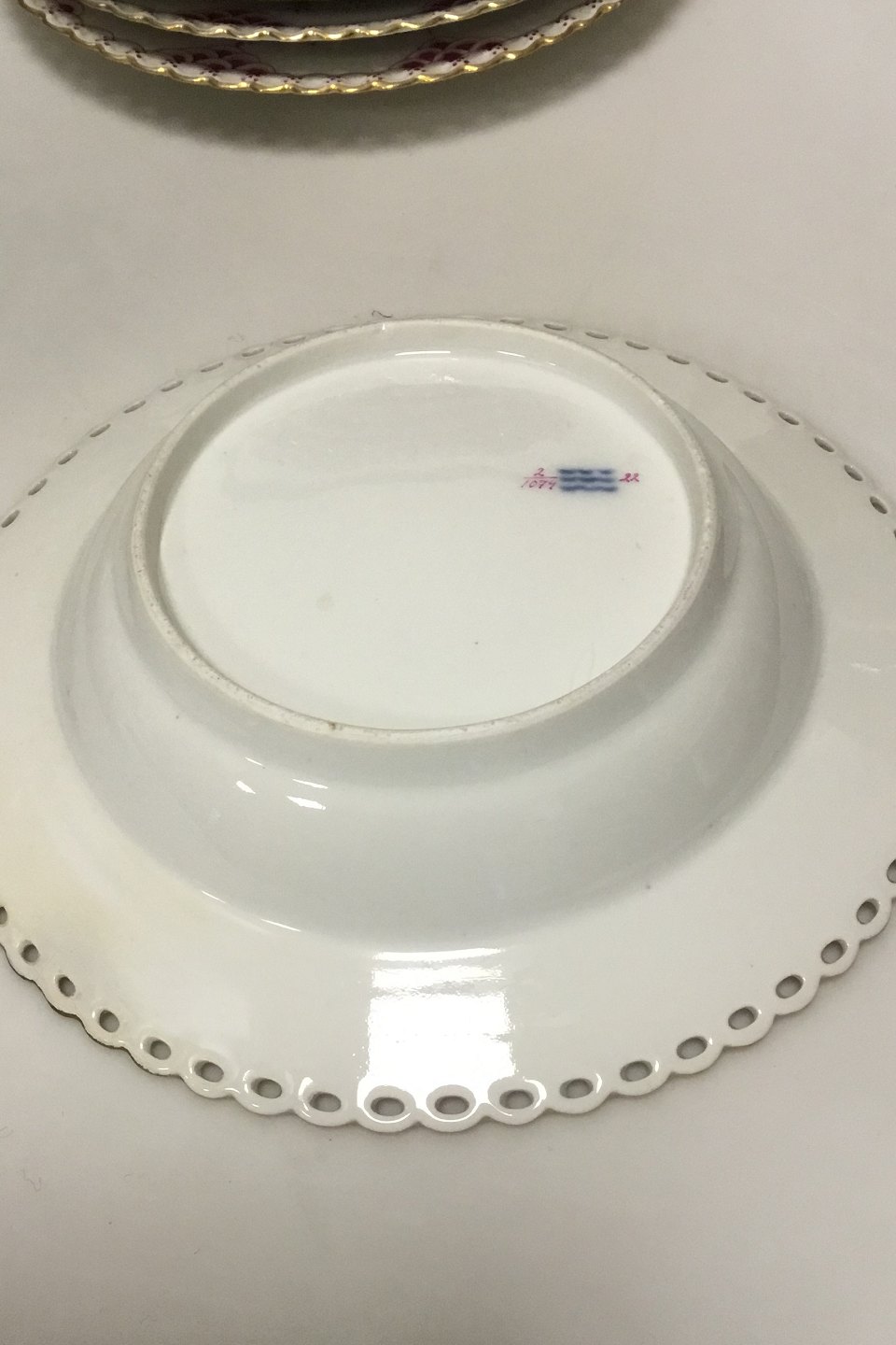 Royal Copenhagen Purpur Fulllace Fluted Various parts of dinnerware. All is 1st Quality, but there are repairs/chips on a total of 21 of the 39 parts. Some newer parts.